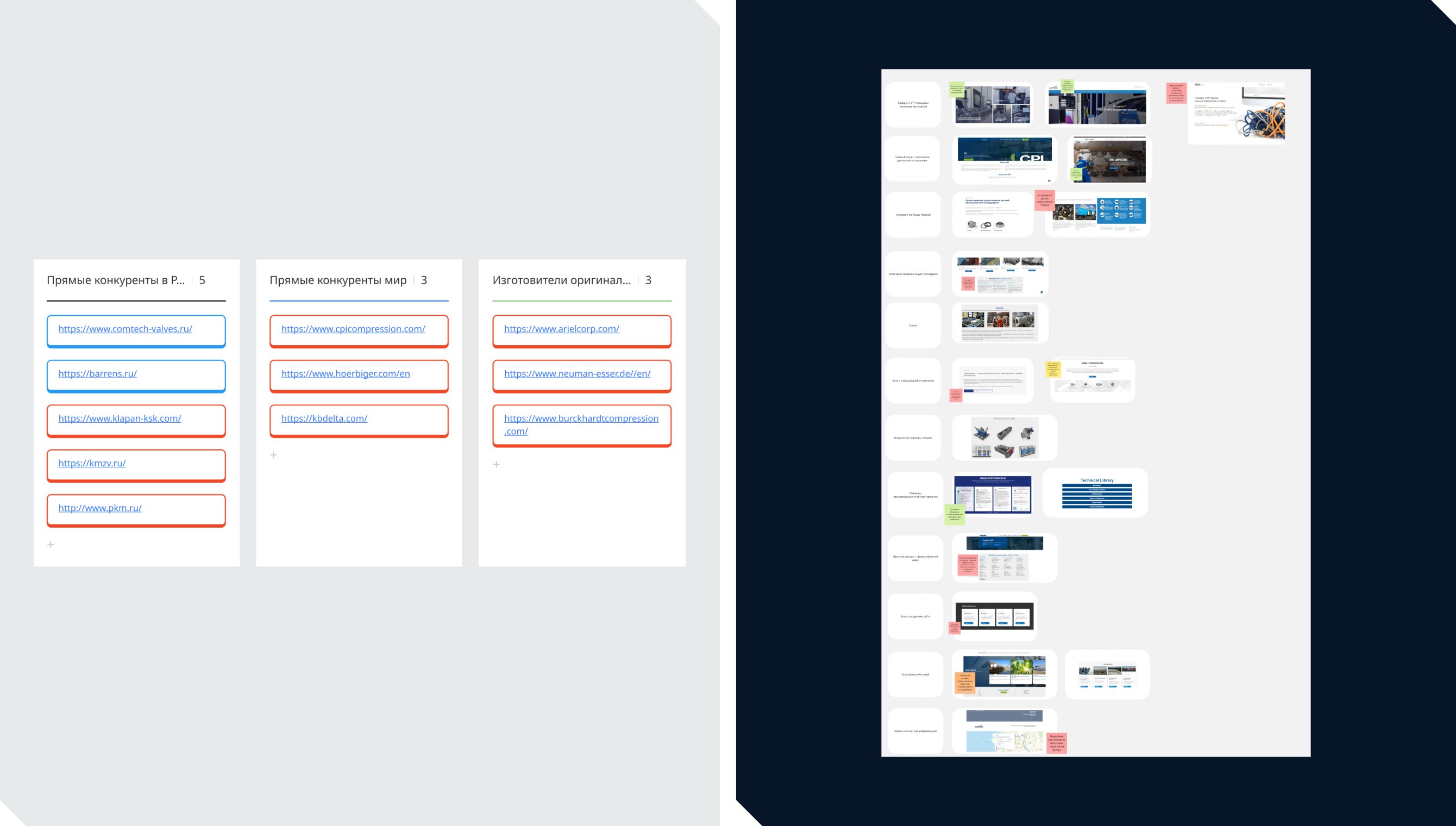 Следующим шагом мы изучили сайты компаний-конкурентов и близких по специфике бизнесов, оценили то, как они решают похожие задачи, отметили интересные подходы.