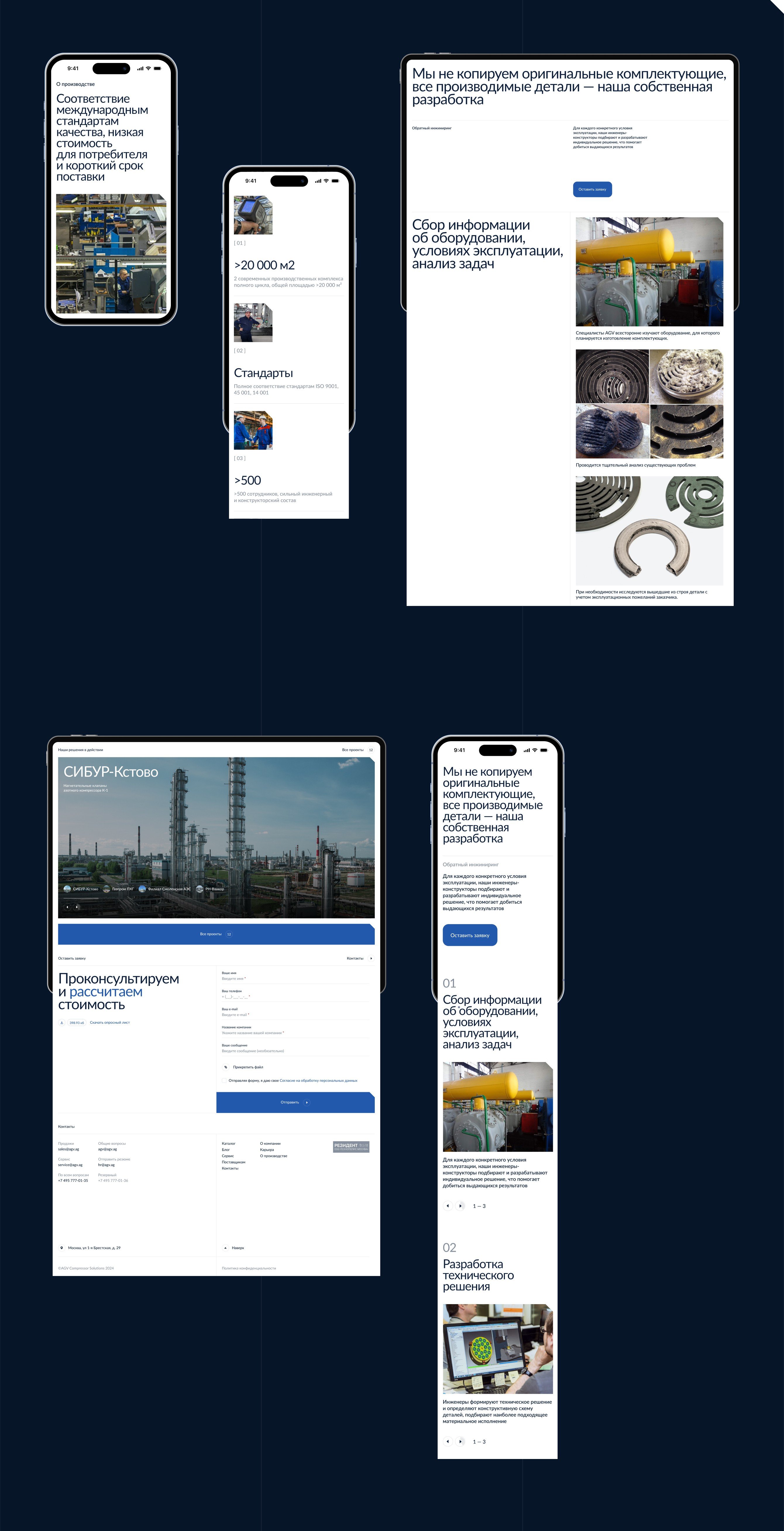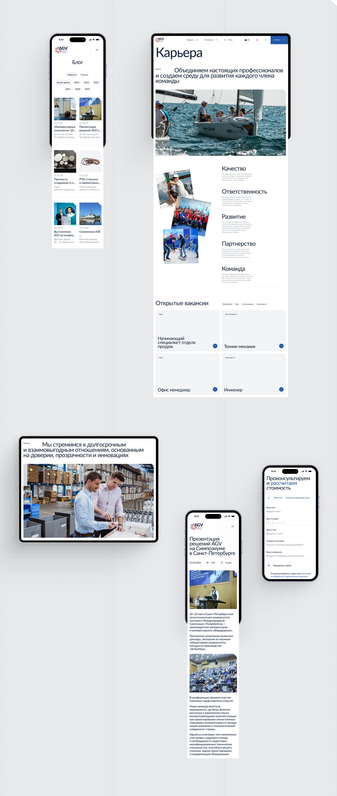 Новый сайт AGV — строгий и технологичный, с понятным каталогом товаров и подробной информацией о компании, производстве и услугах. Он помогает выстраивать доверительные отношения с партнерами, упрощает процесс продаж, работает на формирование HR-бренда компании.