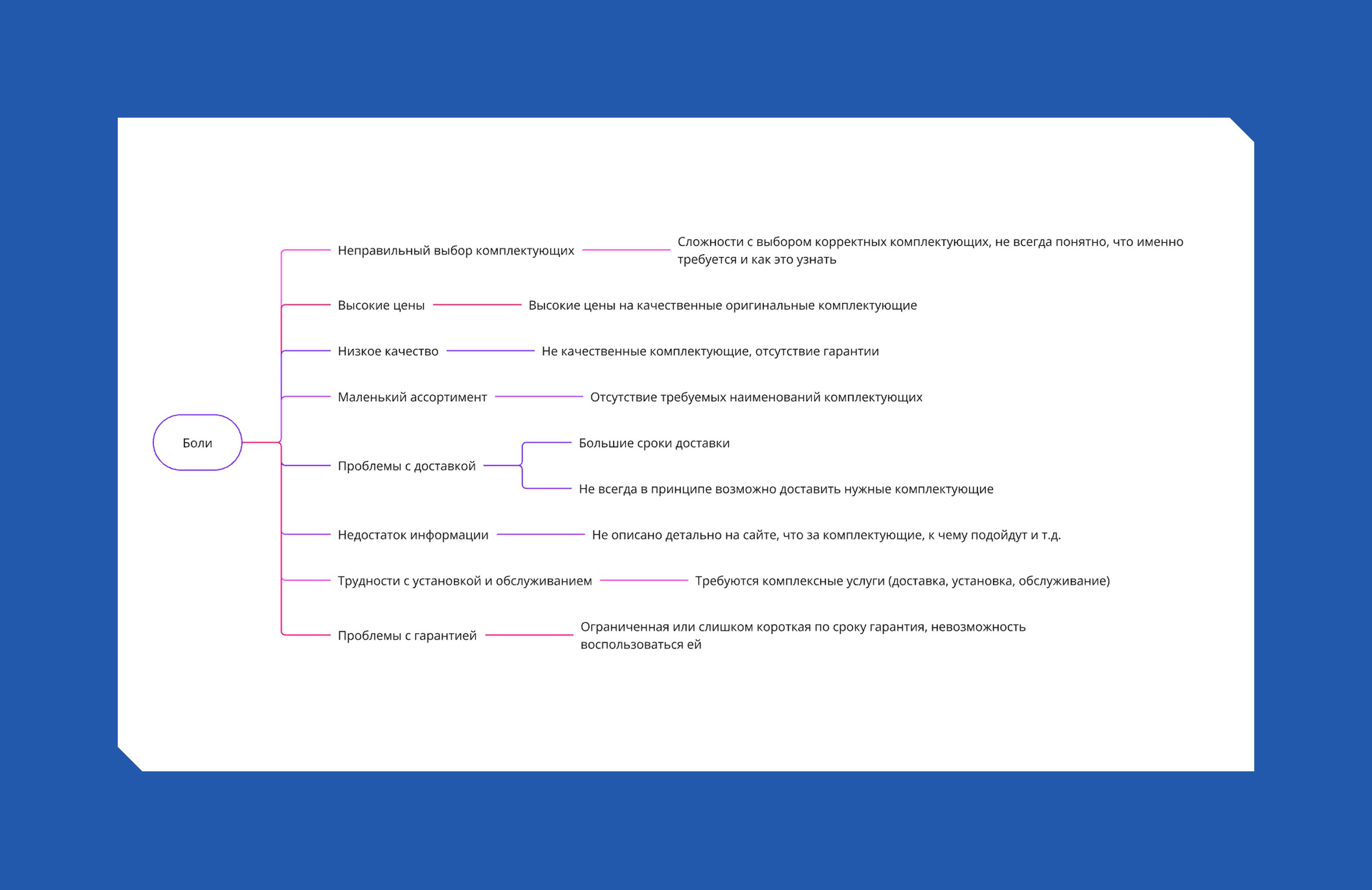 Мы провели несколько интервью с руководителями компании, выделили боли целевой аудитории. Параллельно изучили работу старого сайта, метрики, тепловые карты, структуру страниц. Так мы смогли конкретизировать и декомпозировать первоначально поставленные клиентом задачи.