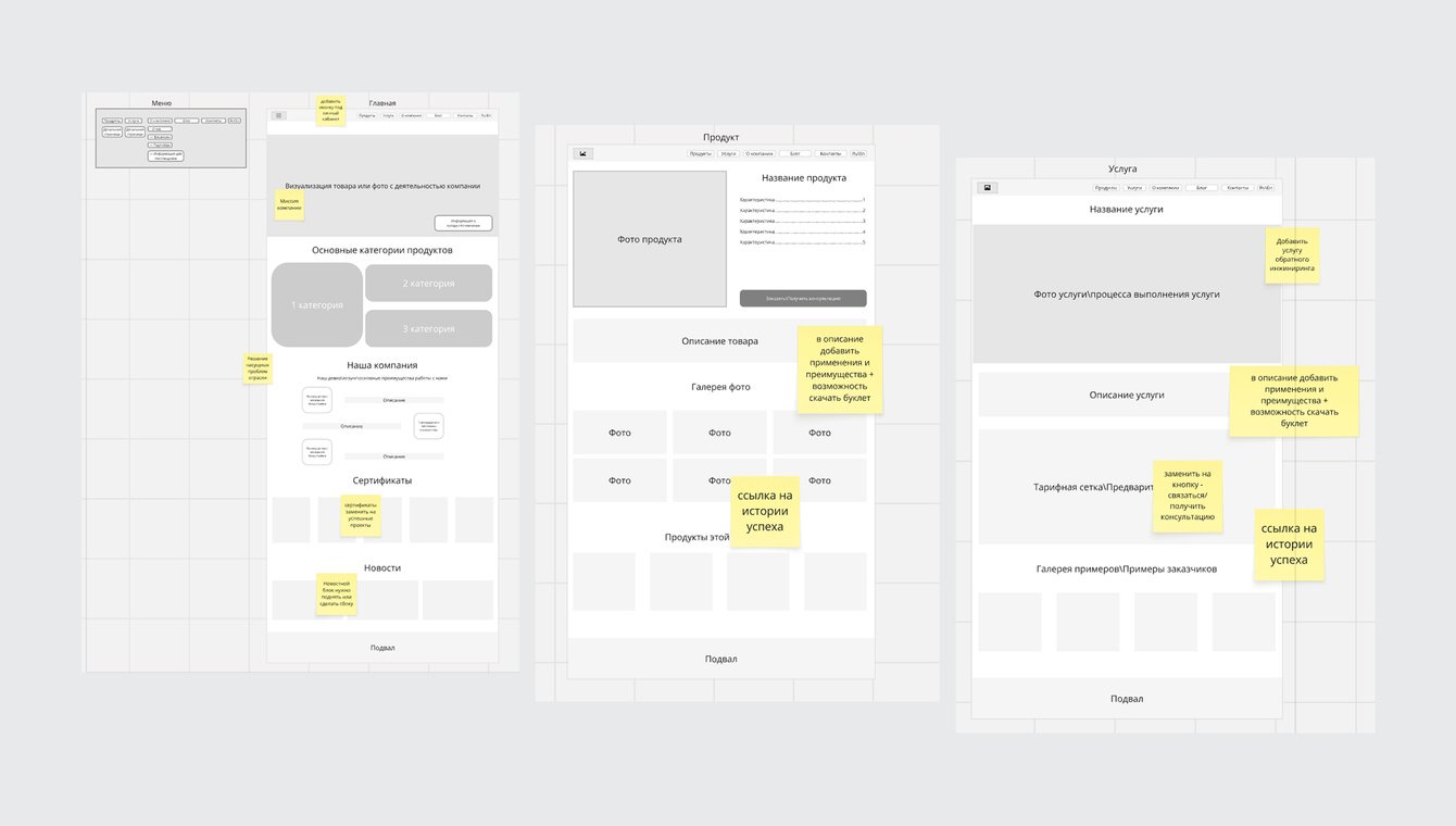 В вайрфреймах мы продемонстрировали заказчику новую структуру и то, как она будет последовательно раскрывать посетителю всю необходимую информацию о компании: