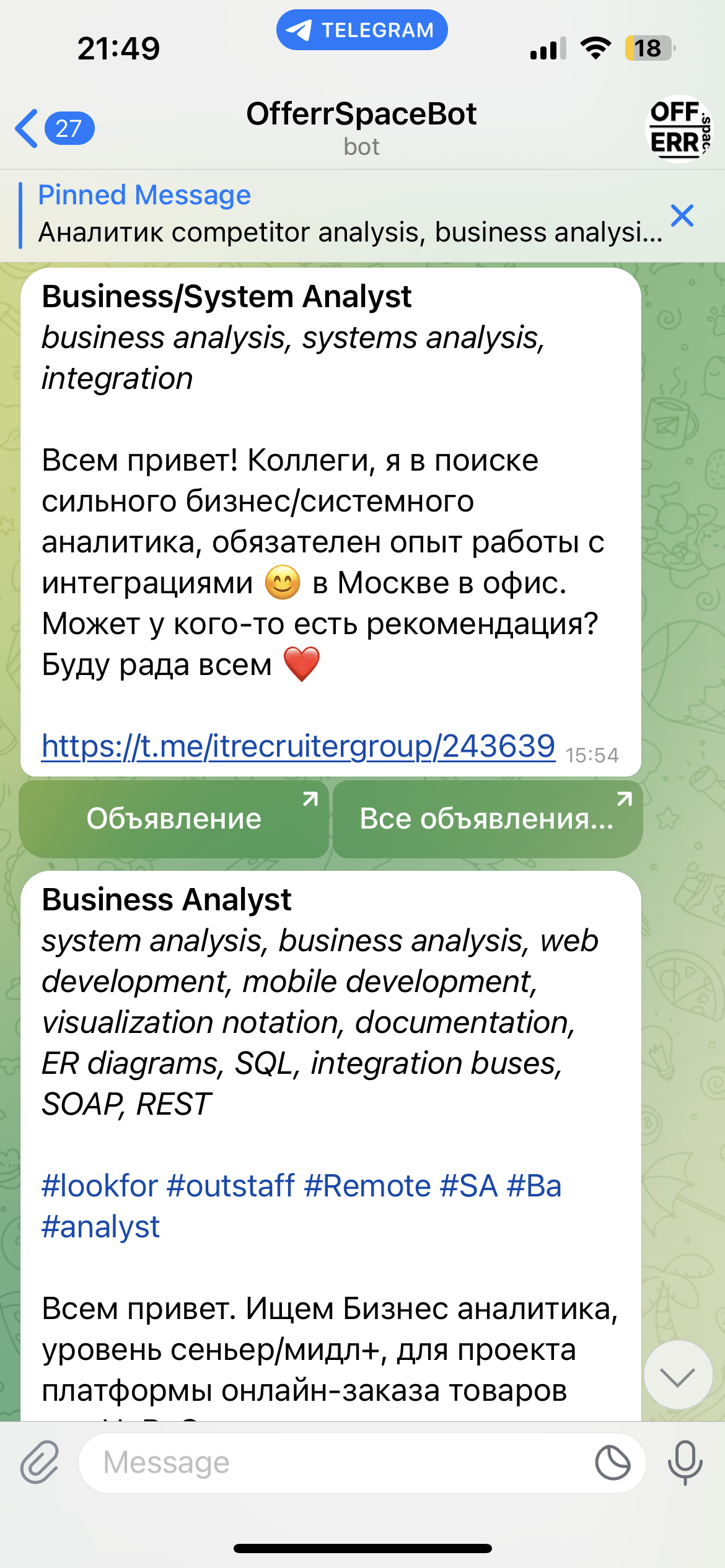 С помощью ИИ собираются и фильтруются объявления из 60+ IT-чатов.