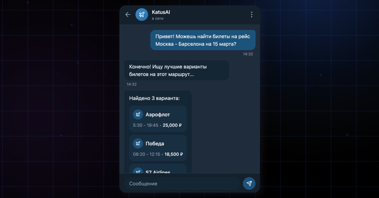 KatusAI — ИИ-тревел ассистент на базе LLM и RAG, который помогает решать задачи путешествий в одном чате. Вместо десятков сайтов пользователь формулирует запрос обычным языком: ассистент понимает намерение, извлекает параметры, находит данные и формирует понятный ответ.