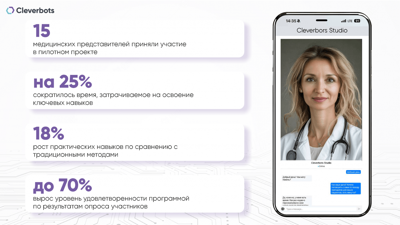 В рамках пилотного проекта, проведённого в течение двух месяцев с участием 15 медицинских представителей, система показала ряд ощутимых улучшений.