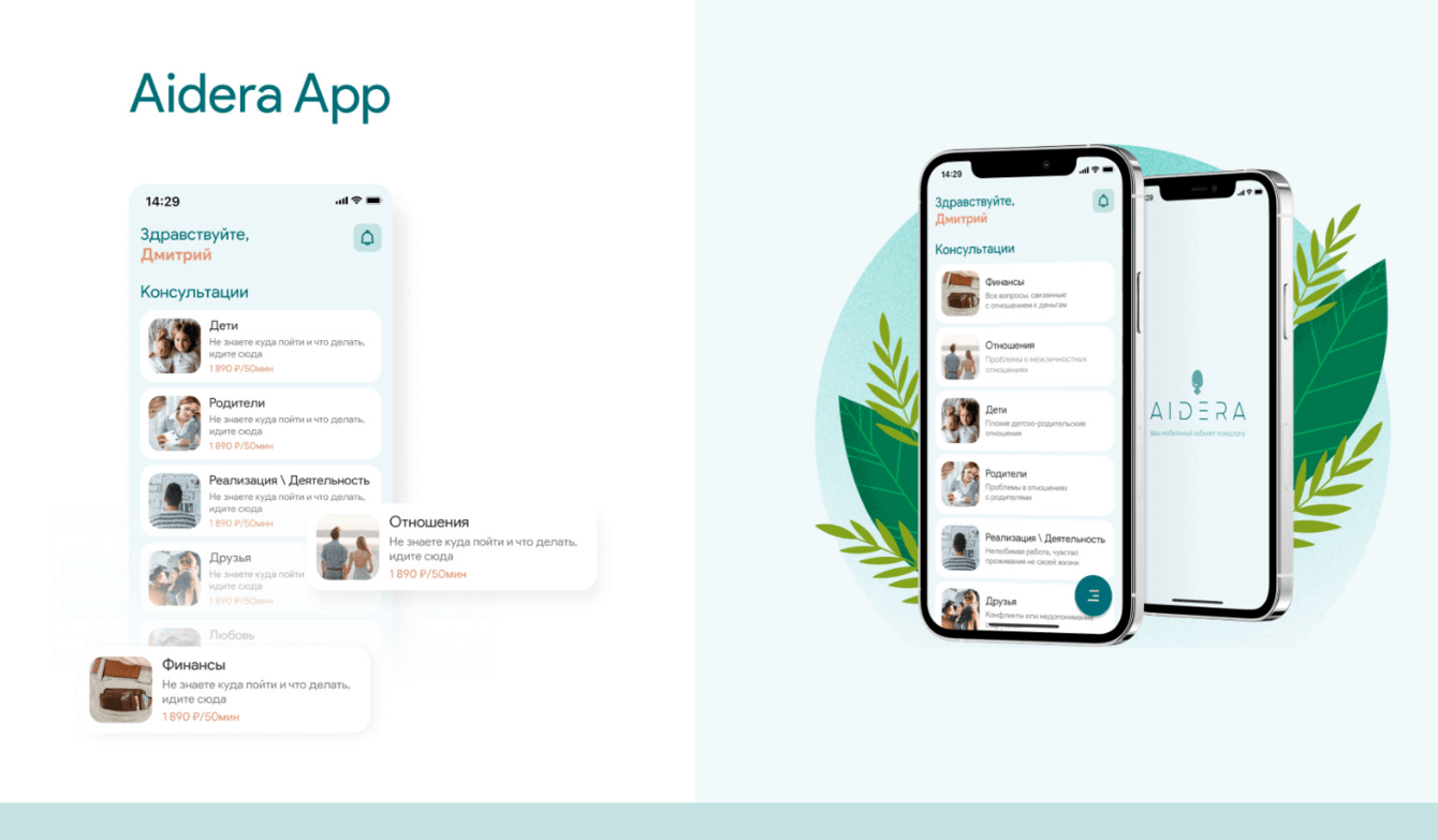 AIDERA – компания, оказывающая услуги в сфере психологической поддержки.