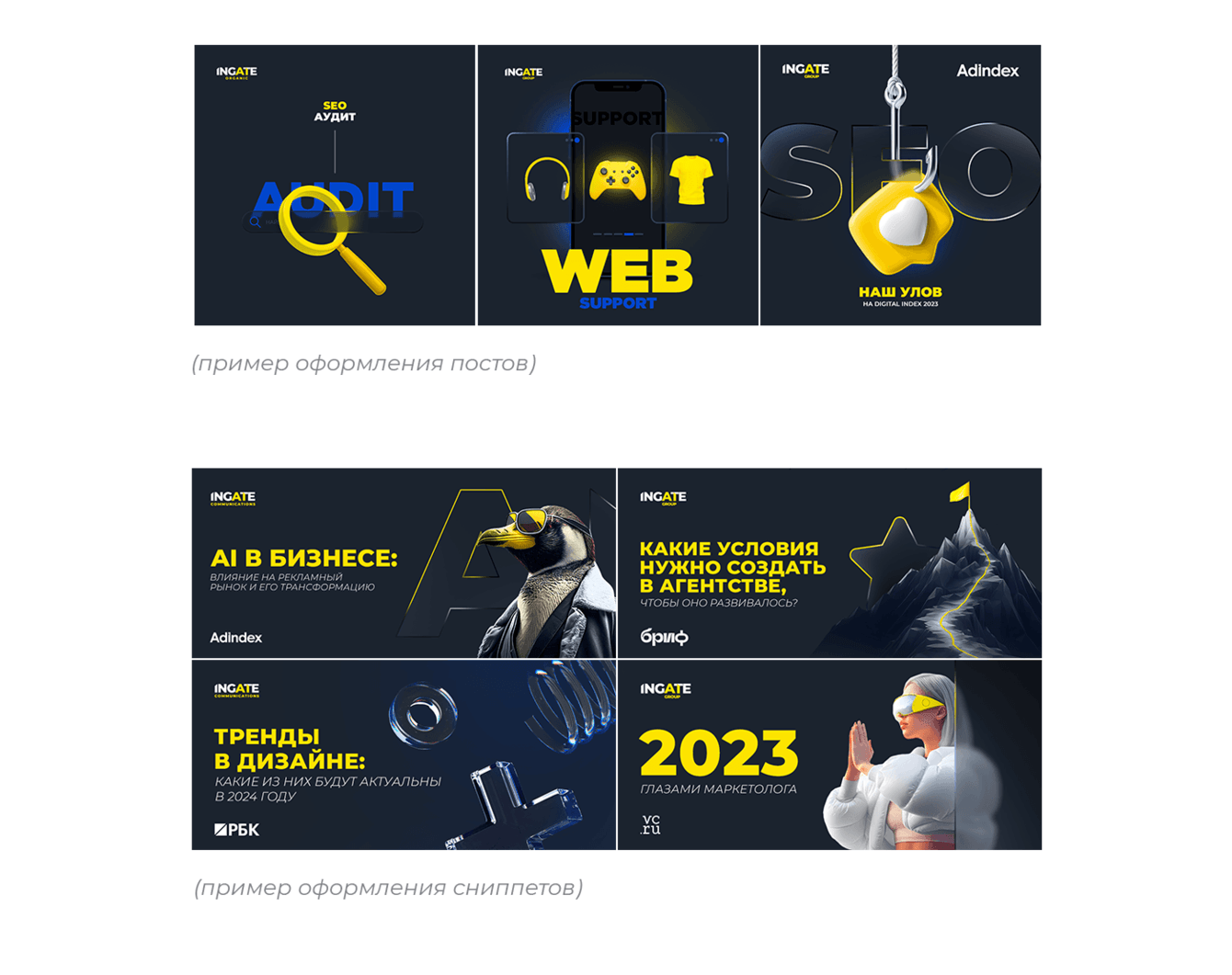 В социальных сетях основой графики являются 3D-изображения, стекломорфизм и типогафика. Также необходимо соблюдать основные цвета и шрифты. В остальном каждый юнит может экспериментировать с визуалом для достижения своих целей.