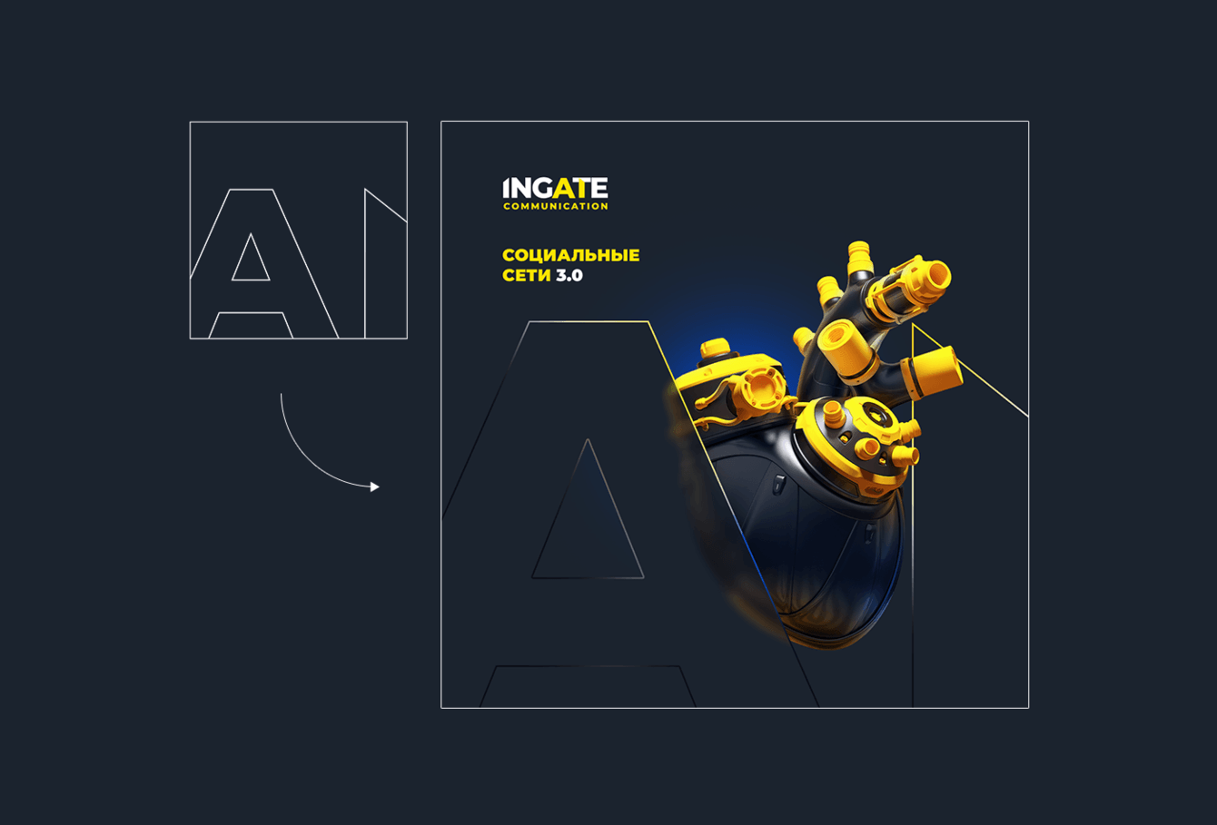 Именно AI должен стать новым узнаваемым символом бренда, основой айдентики и фирменного стиля.