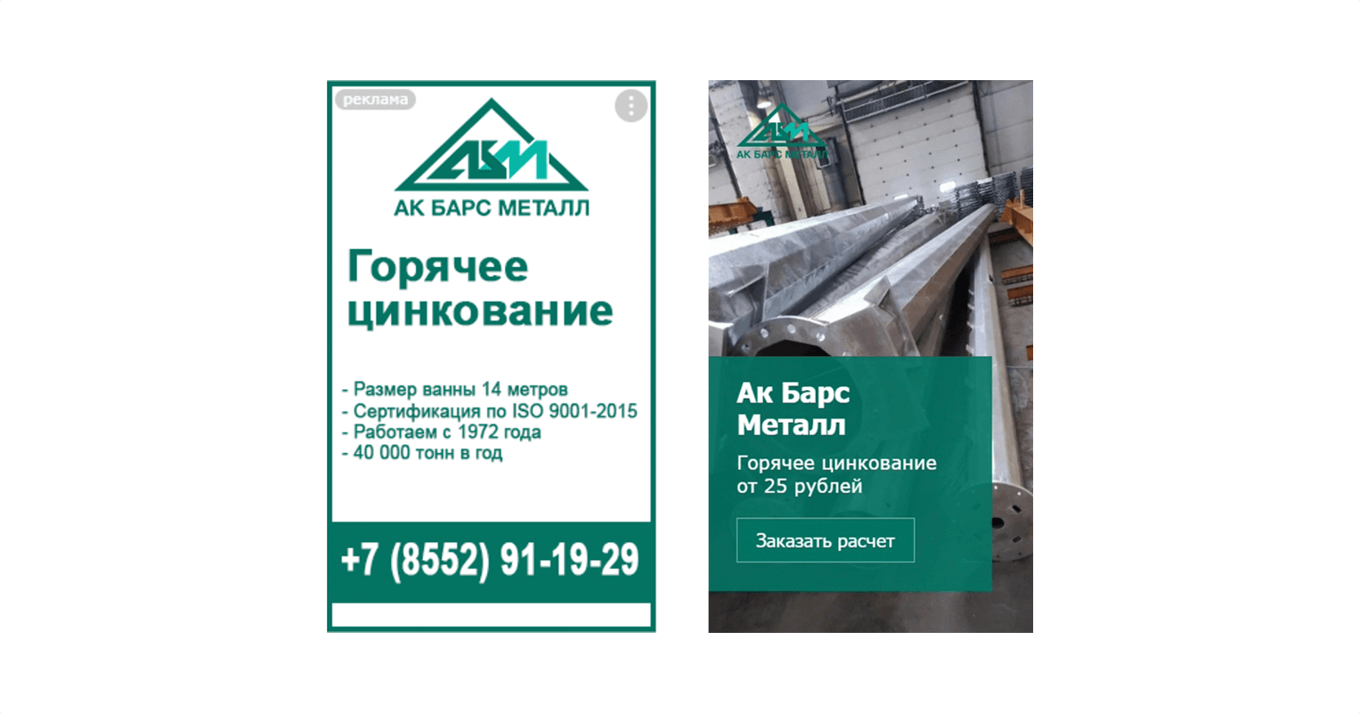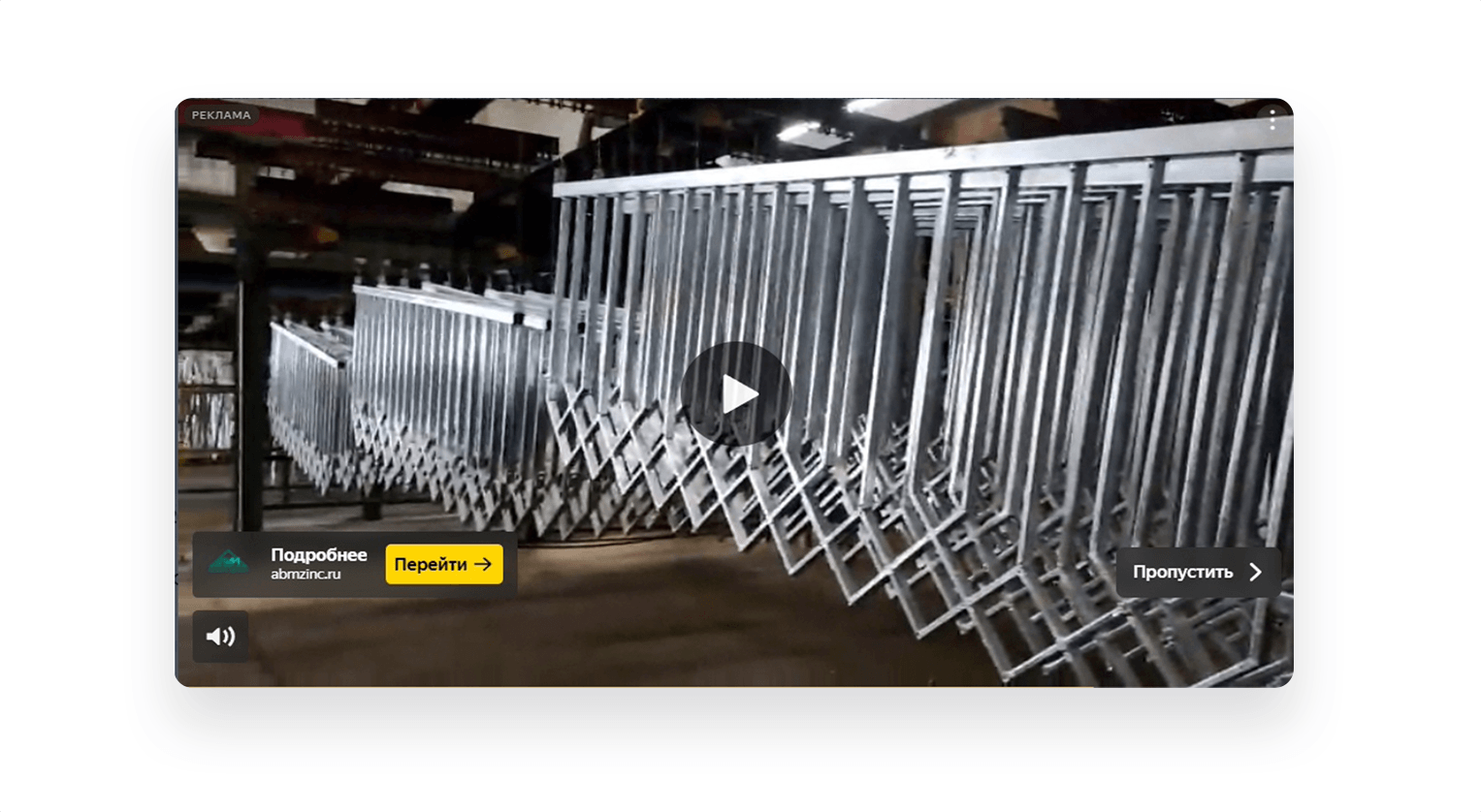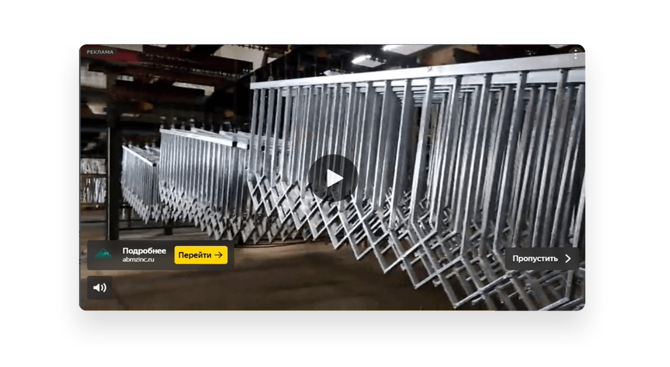 Кроме стандартных креативов, мы использовали в объявлениях промо-видео с завода. Видеоформат позволяет показать больше: это особенно эффективно для рекламы производств, где важно подробно продемонстрировать продукцию.