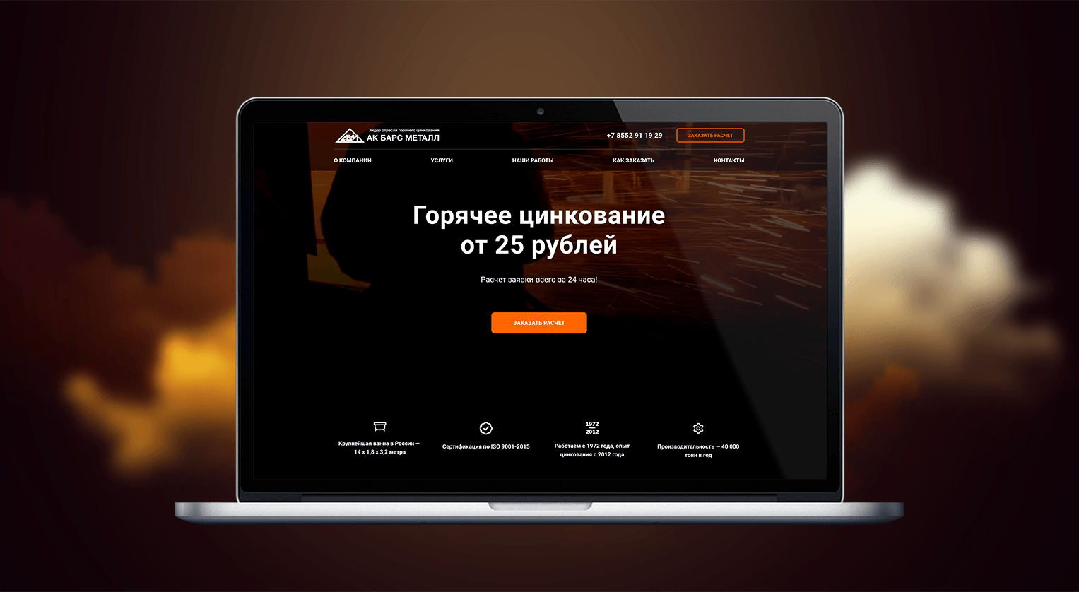 На подготовку посадочной площадки и запуск рекламы у нас был месяц. Перестроить нынешний сайт с полноценными правками по юзабилити и контенту за такой короткий срок было невозможно. Поэтому мы решили создать лендинг об услуге горячего цинкования и вести на него посетителей с контекстной рекламы.