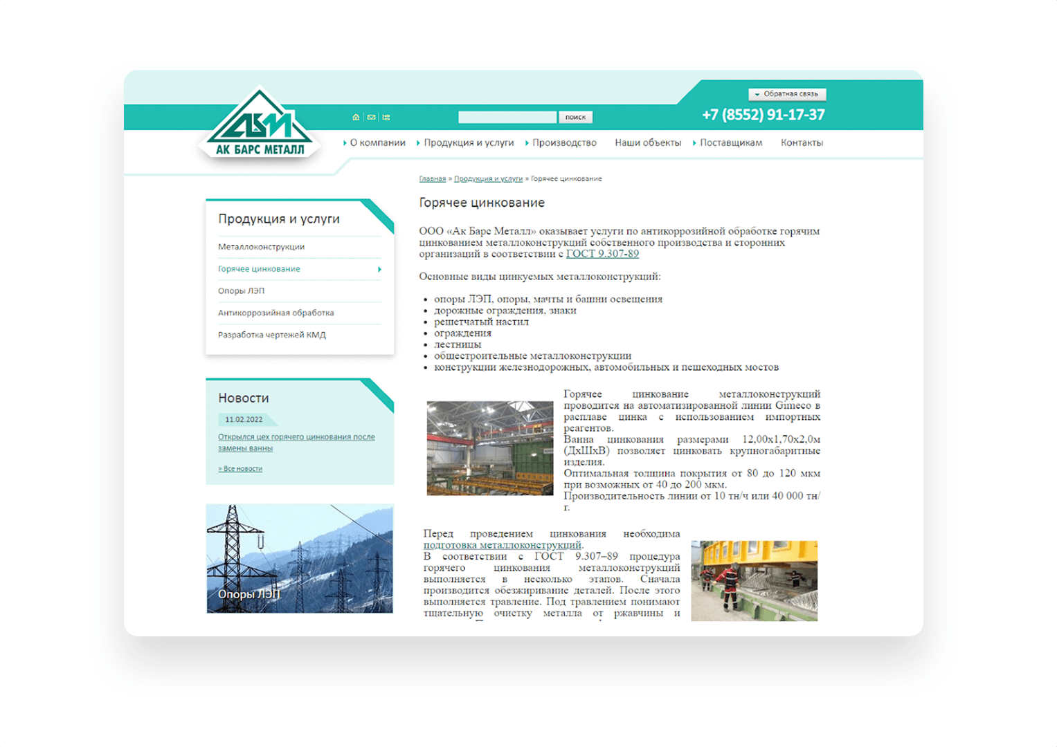 Вместе с отделом маркетинга мы провели аудит посадочной страницы о горячем цинковании и выяснили, что для продвижения она не годится. Даже если бы посетитель захотел сделать заказ, он бы не смог этого сделать: на сайте не было ни формы заявки, ни кликабельного телефона.