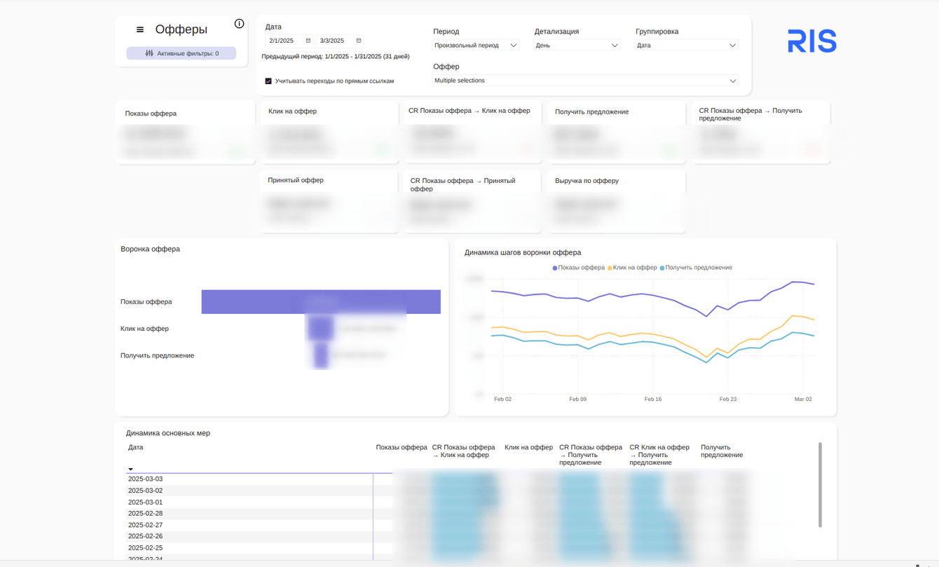 Чтобы быстрее предоставить команде практическую пользу, мы разделили проект на два этапа. Первые отчёты уже принесли ценные выводы: как функционируют офферы, какие воронки наиболее эффективны, куда движется продукт. Это стало ключевым моментом — команда наконец-то получила ясное представление о происходящем.