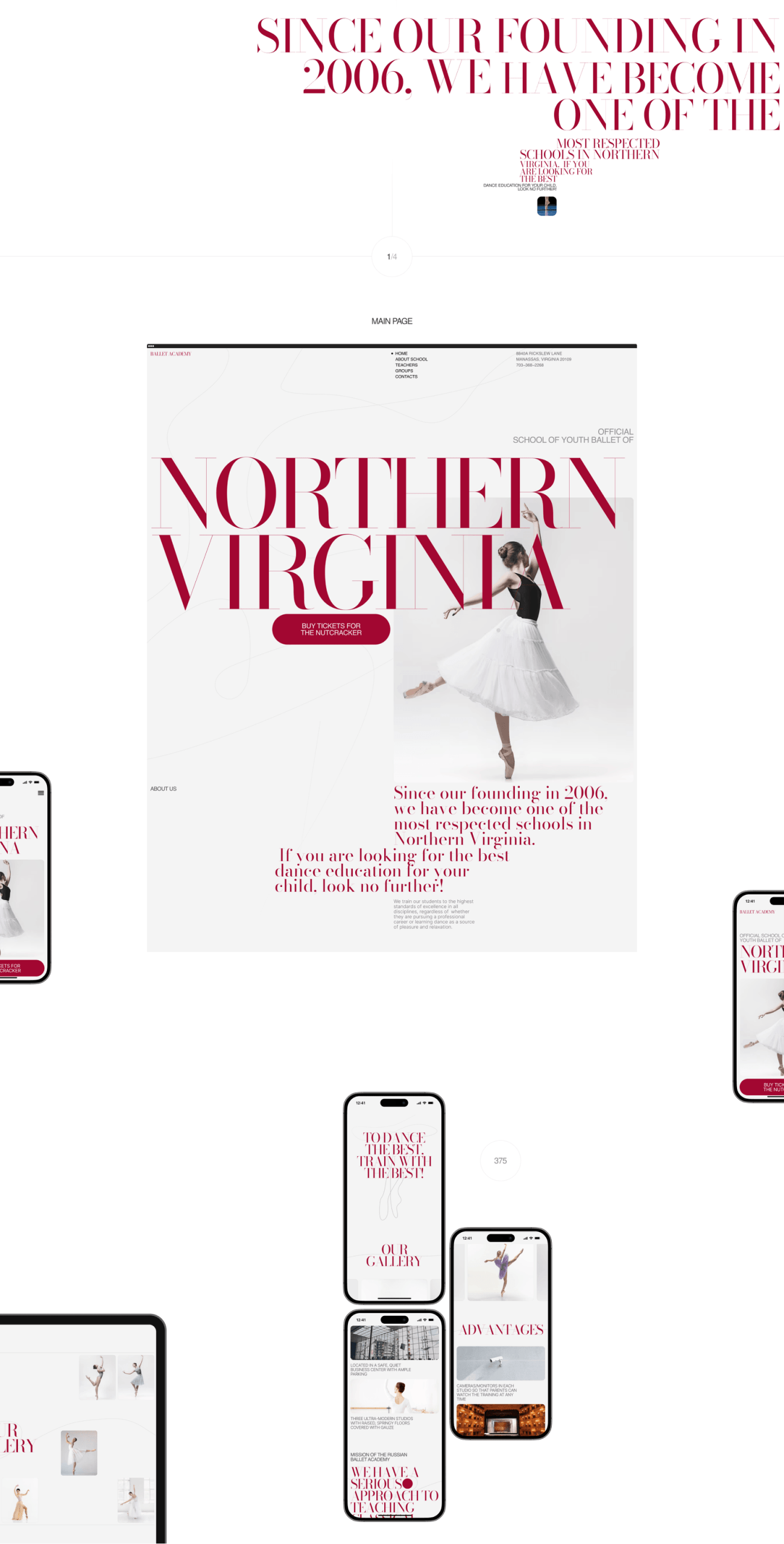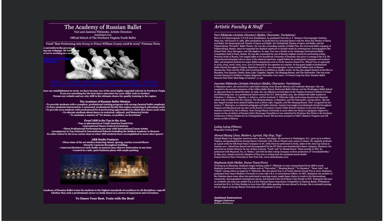 Попадая на сайт, человек сразу понимает куда он попал. Коротко рассказали о школе, чтобы объяснить что это не просто очередная школа школа. Она существует с 2006 и является одной из лучших школ штата, они тренируют студентов по высшим стандартам, чтобы они могли продолжить свою профессиональную карьеру в балете.