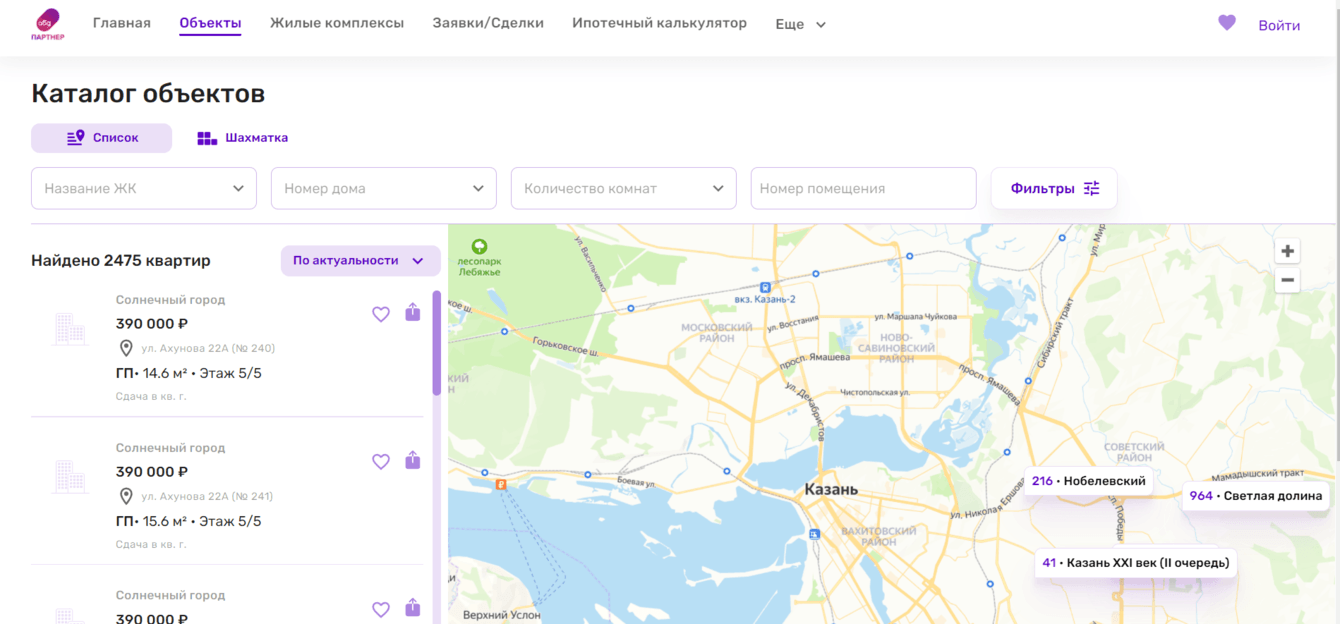 Реализация функционала для работы с коммерческой недвижимостью — офисами, магазинами, парковочными местами. Отображение «шахматки» для просмотра свободных и забронированных квартир.