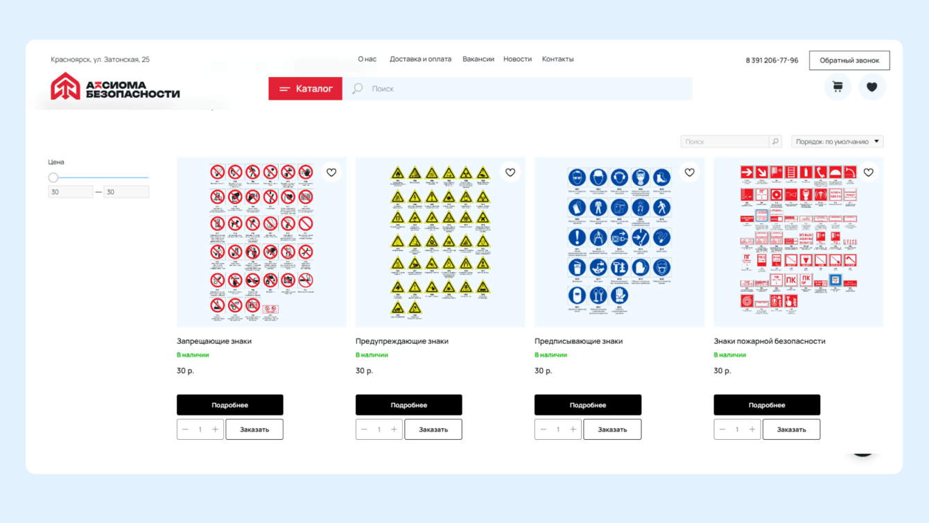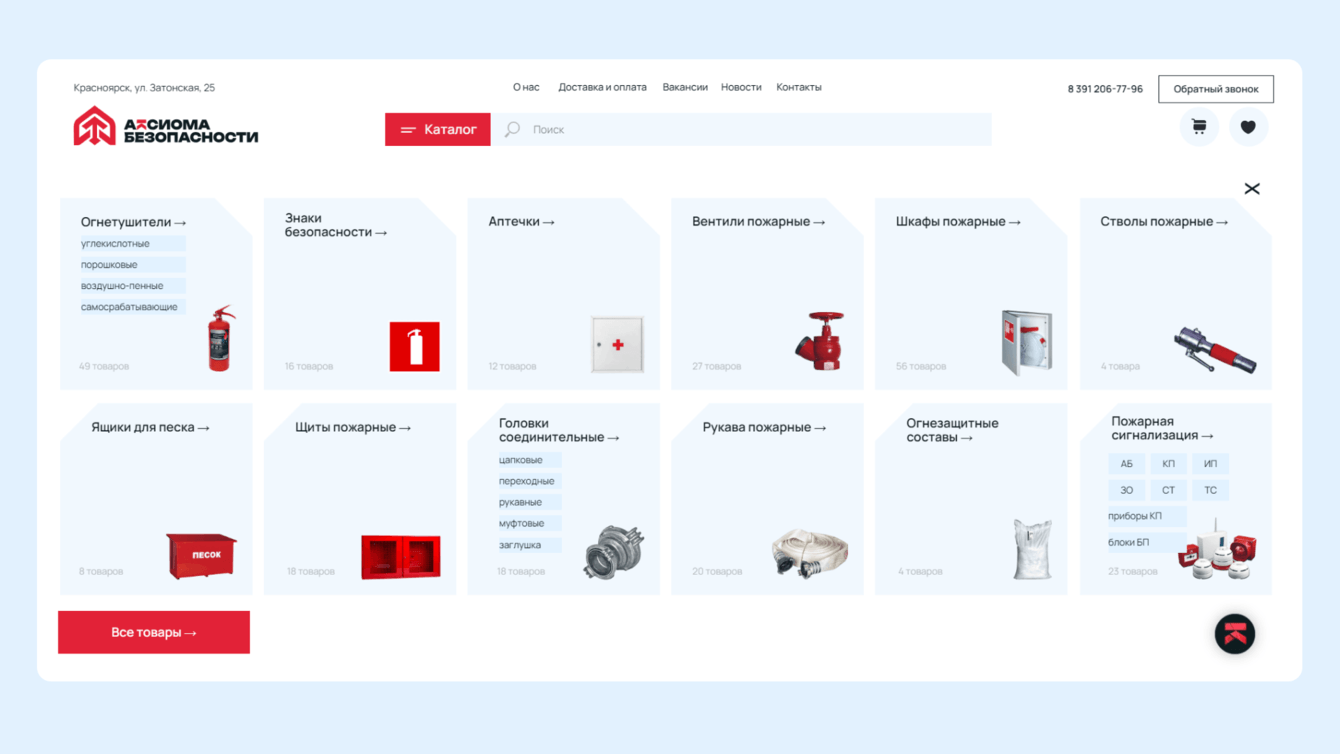 Клиент: «Аксиома Безопасности» — компания, специализирующаяся на продаже пожарного оборудования.