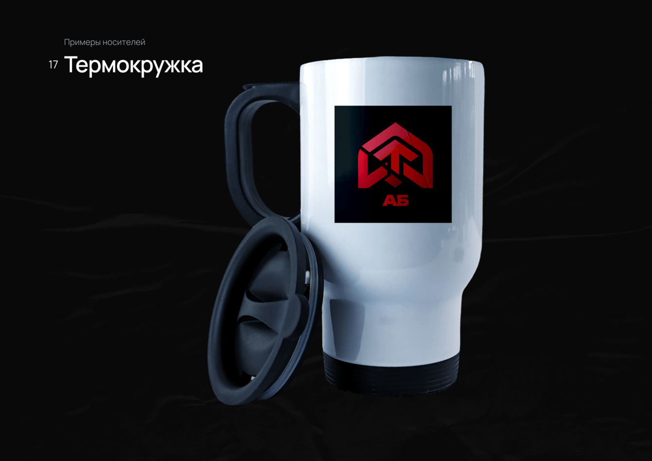 — Примеры оформления сувенирной продукции (термокружка, портативный аккумулятор).