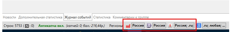 2. Выбор региона (Россия) и поисковых систем (Яндекс и Google), для которых требовалось провести замер.