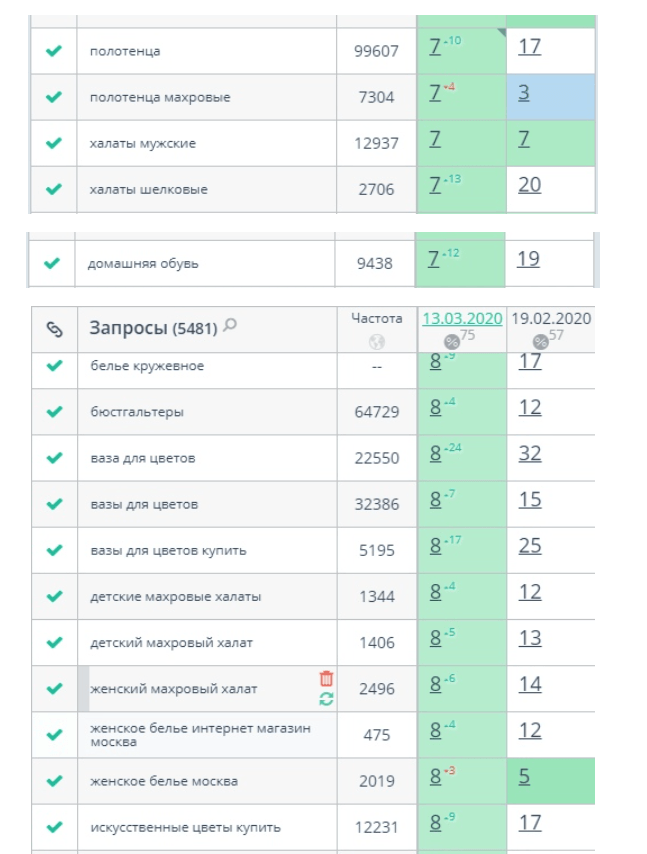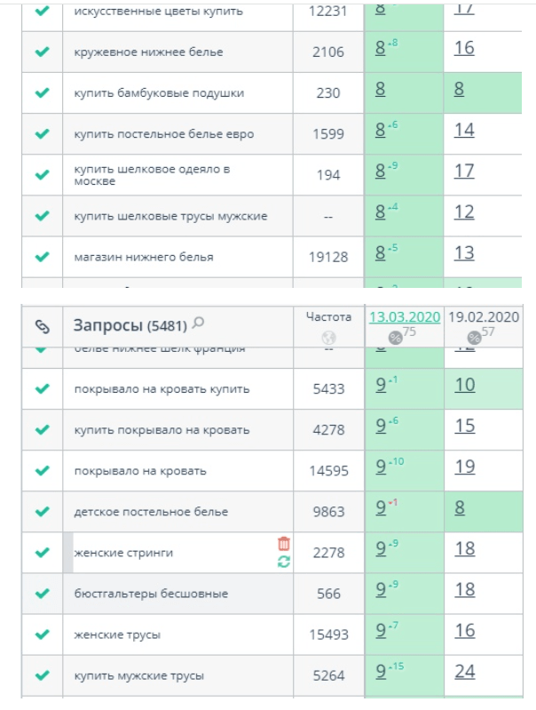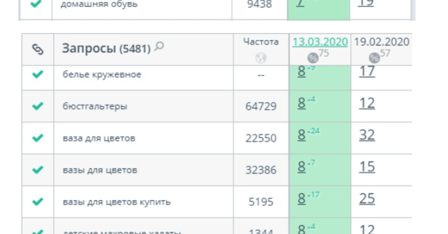 Перед тем как приступить к внедрению оптимизированного семантического ядра на сайт, крайне важно было зафиксировать исходные позиции интернет-магазина по ключевым запросам в поисковых системах. Это позволило бы в дальнейшем оценить эффективность проделанной работы путем сравнения "до" и "после".