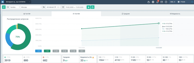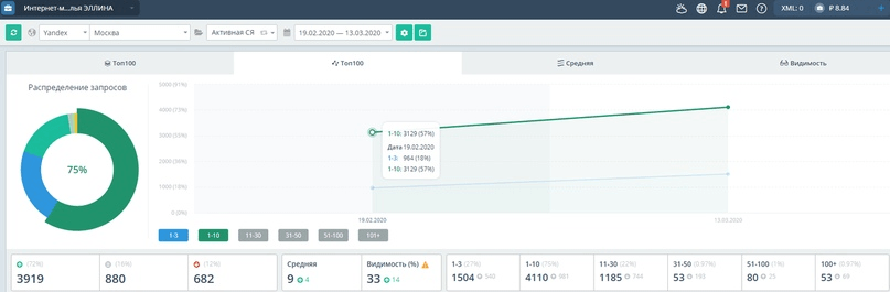 Для демонстрации роста видимости сайта в поисковых системах после применения стратегии "Активной семантики" мы будем использовать данные из двух источника: