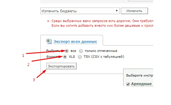 Далее весь оставшийся список релевантных запросов был скопирован для дальнейшей обработки с целью получения данных о частотности поиска.