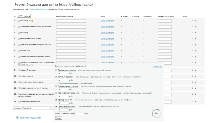 После сбора исходных данных о семантике и ее частотности, следующим важным шагом было определить, к каким конкретным страницам интернет-магазина домашнего текстиля относятся те или иные поисковые запросы. Для этой цели мы воспользовались сервисом SAPE, который предоставляет инструменты для автоматической привязки запросов к страницам сайта.