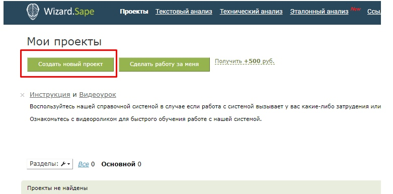 1. Создание нового проекта в интерфейсе SAPE.