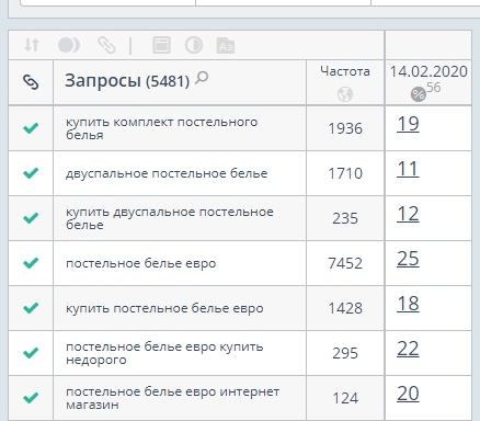 Благодаря применению технологии маркерной привязки нам удалось существенно расширить исходное семантическое ядро, добавив к нему большое количество дополнительных релевантных запросов, имеющих высокую частотность поиска. Это позволило максимально полно охватить все возможные варианты поисковых фраз, по которым целевая аудитория может искать товары в интернет-магазине домашнего текстиля.