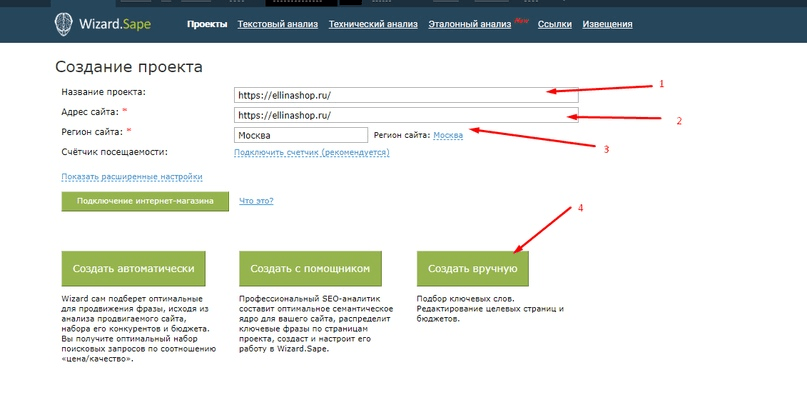 -Ввод названия проекта, адреса сайта и выбор региона (в нашем случае - Россия).
