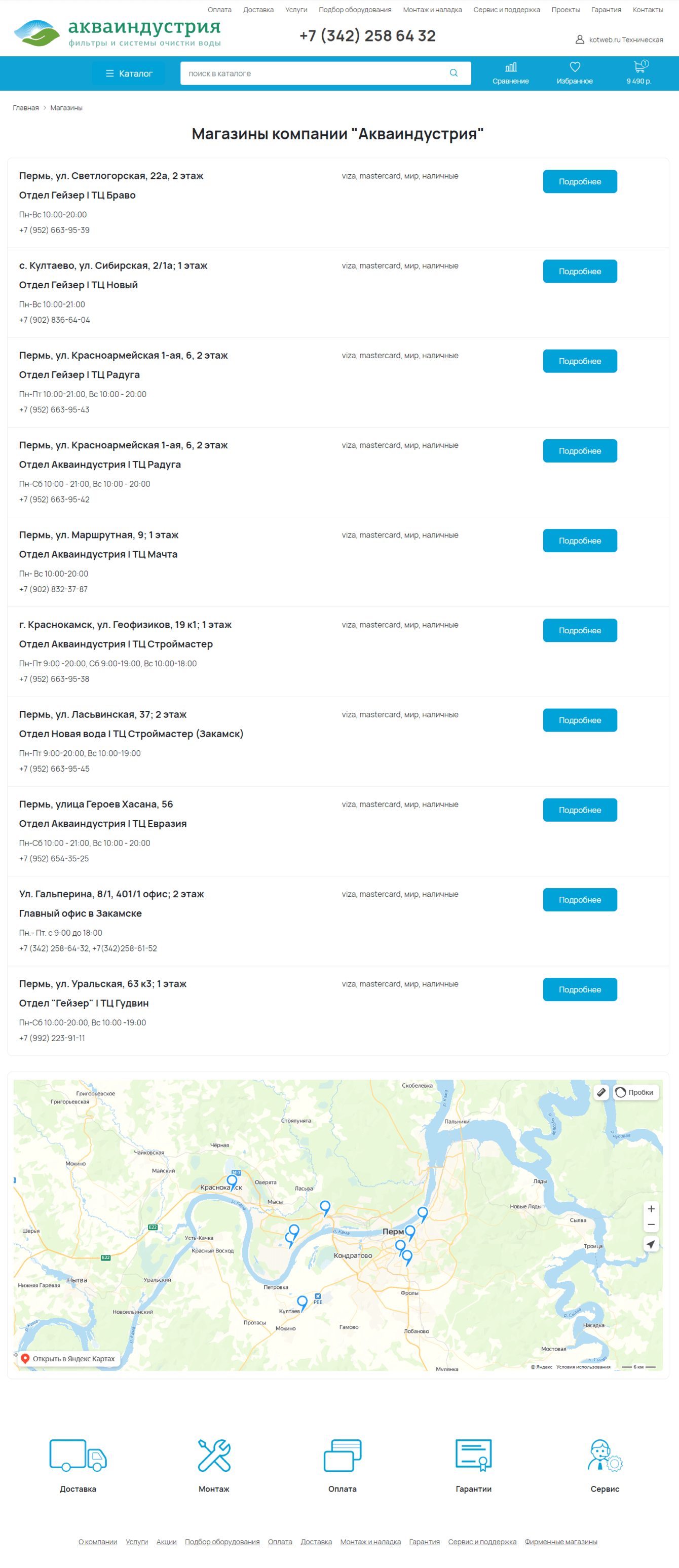 - список магазинов с картой яндекс и информацией о каждом магазине с карточками подробной информации