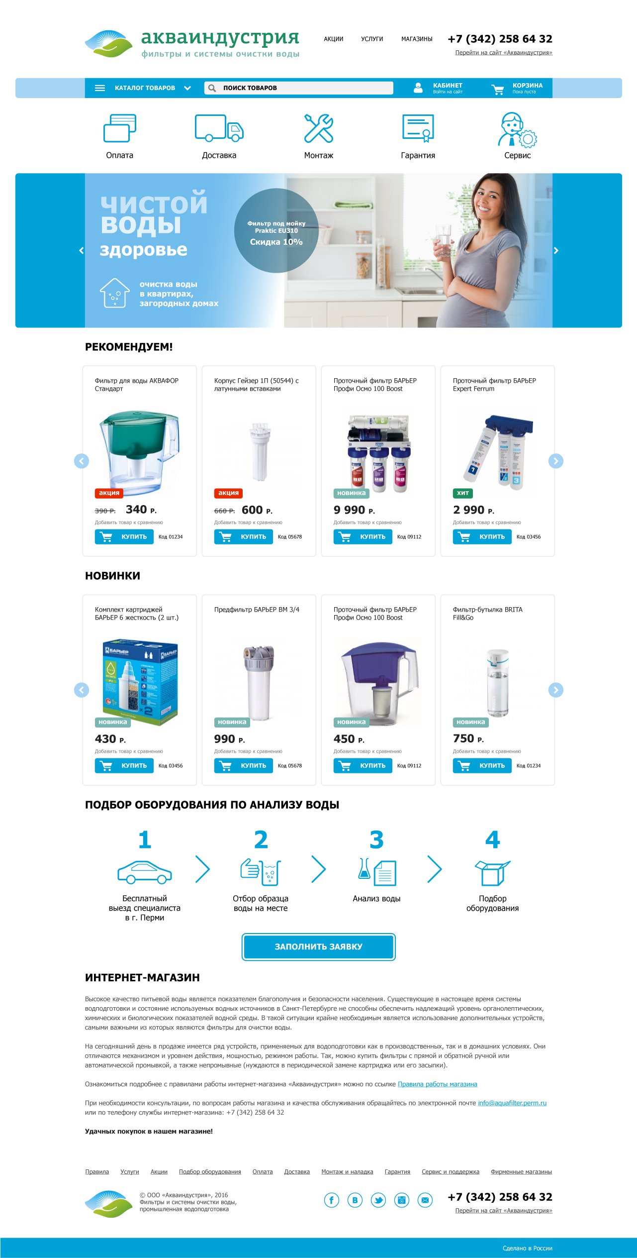 - оценка качества воды и подбор оборудования