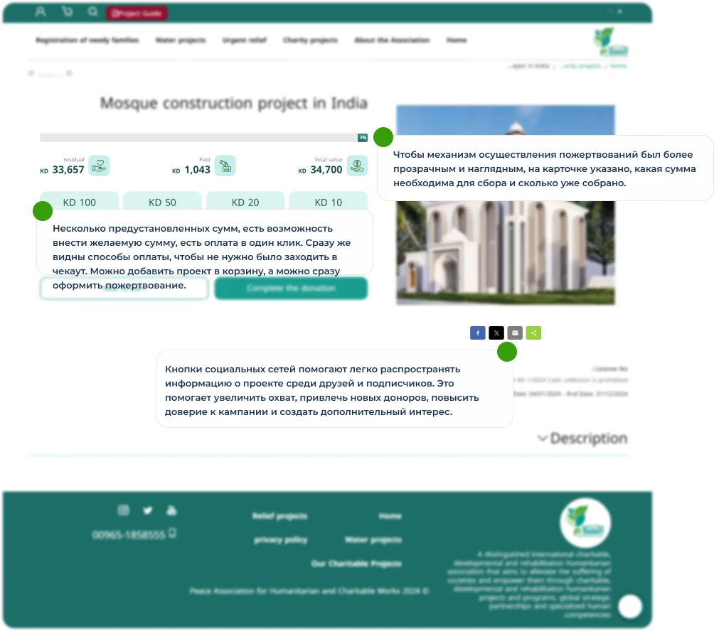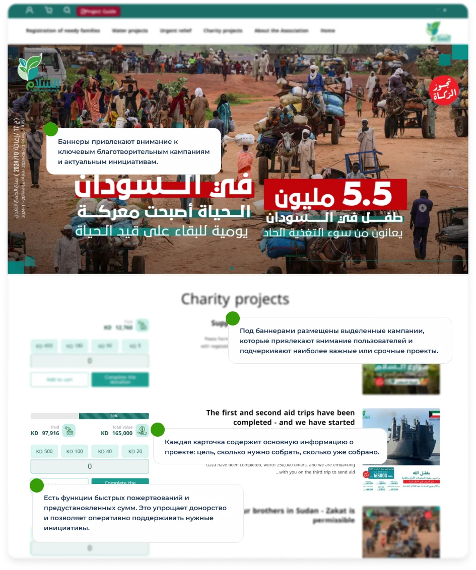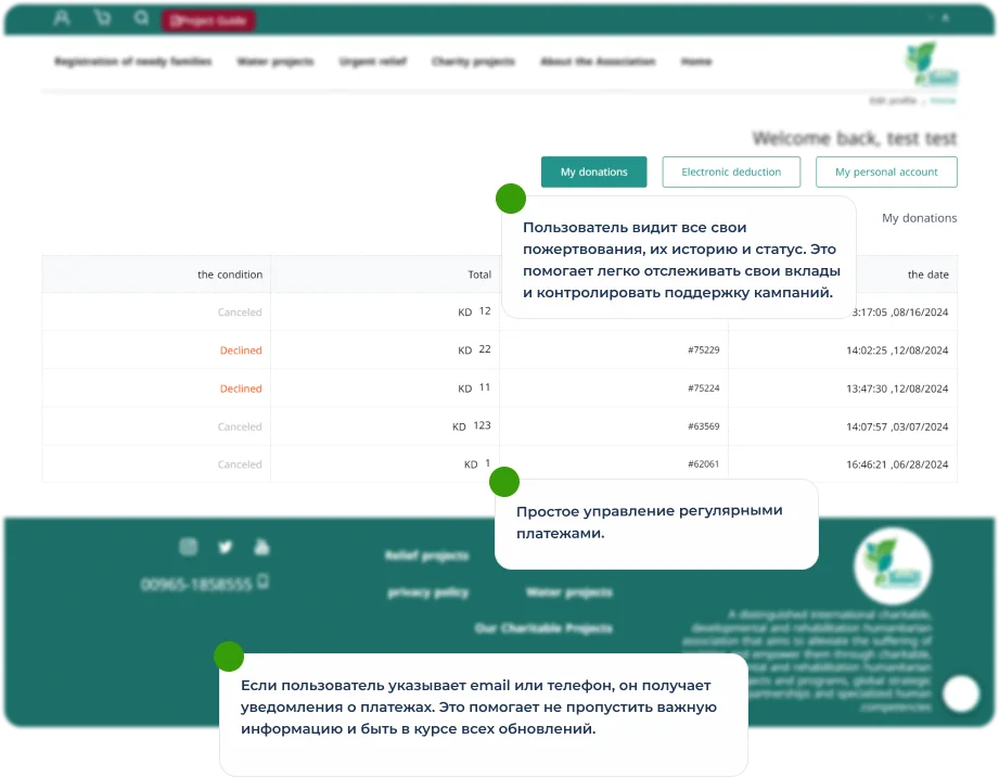 Это делает пожертвования более удобными для доноров, освобождая их от необходимости каждый раз вручную подтверждать платеж. Для Al-Salam такая система обеспечивает стабильные поступления, помогая лучше планировать долгосрочные проекты.