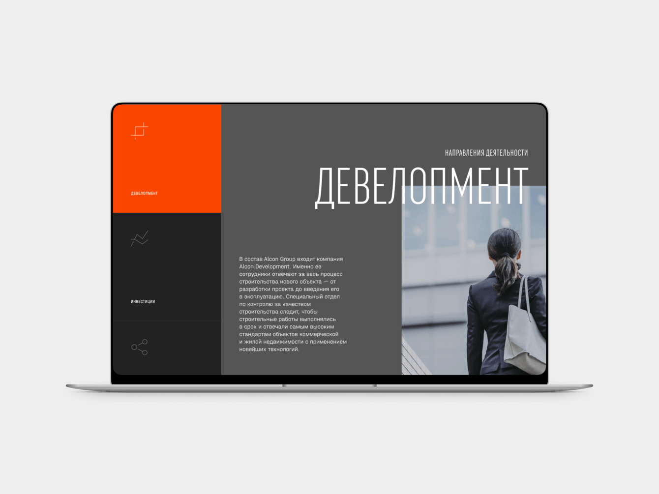 От такого масштабного и основательного заказчика ожидаешь чрезмерной формальности и официозности. Нашей целью было разбить этот стереотип — сделать яркий и энергичный корпоративный сайт, который воплотит деловой дух компании.