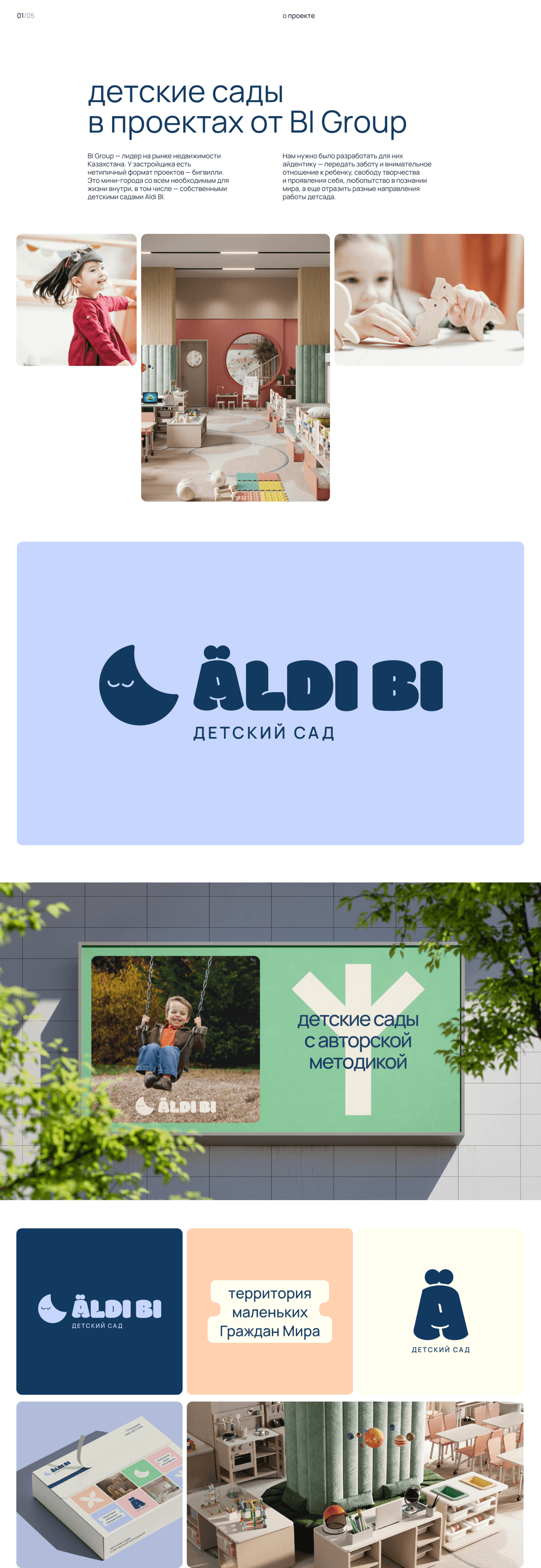 В BI Group уже работали с Бюро ранее, поэтому мы знали, что ребятам можно доверять. Нам надо было разработать айдентику детского сада — несколько предыдущих итераций не оправдали ожиданий, поэтому мы обратились в Бюро.