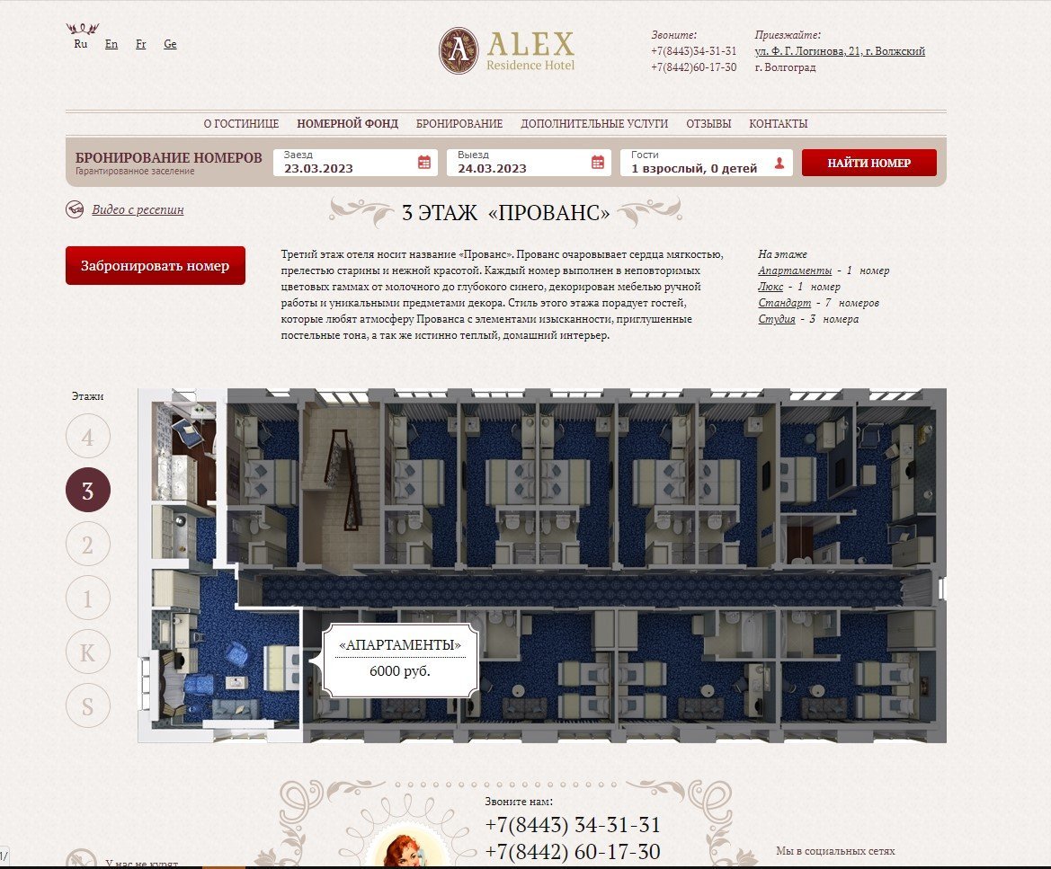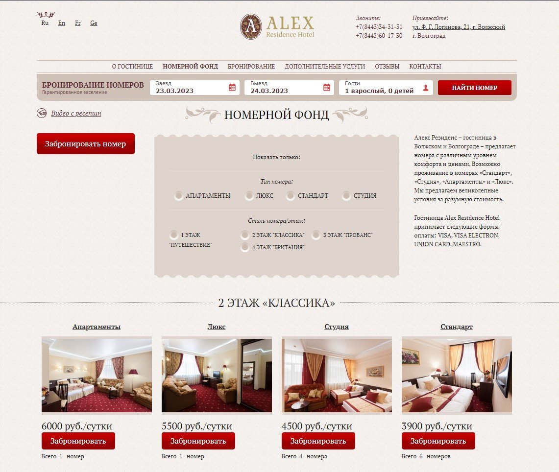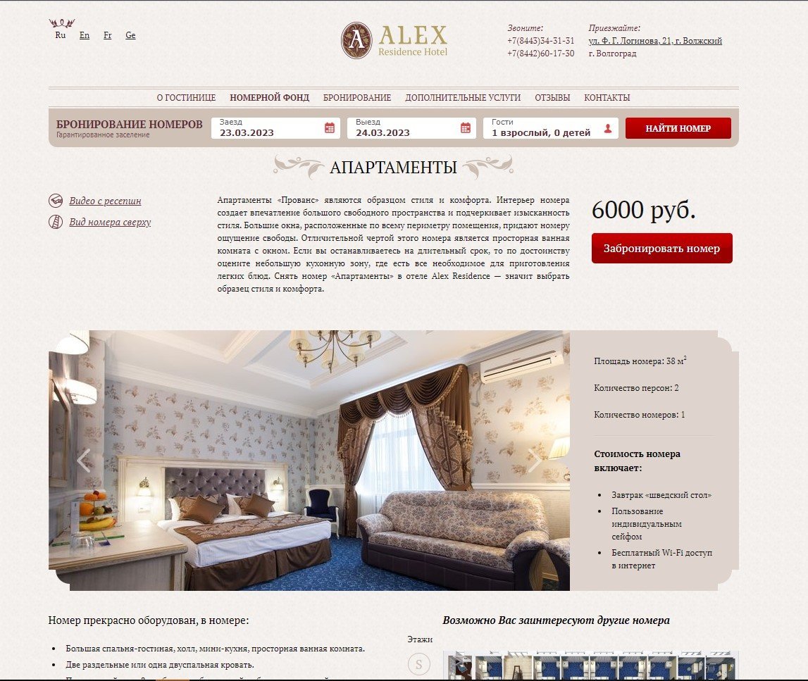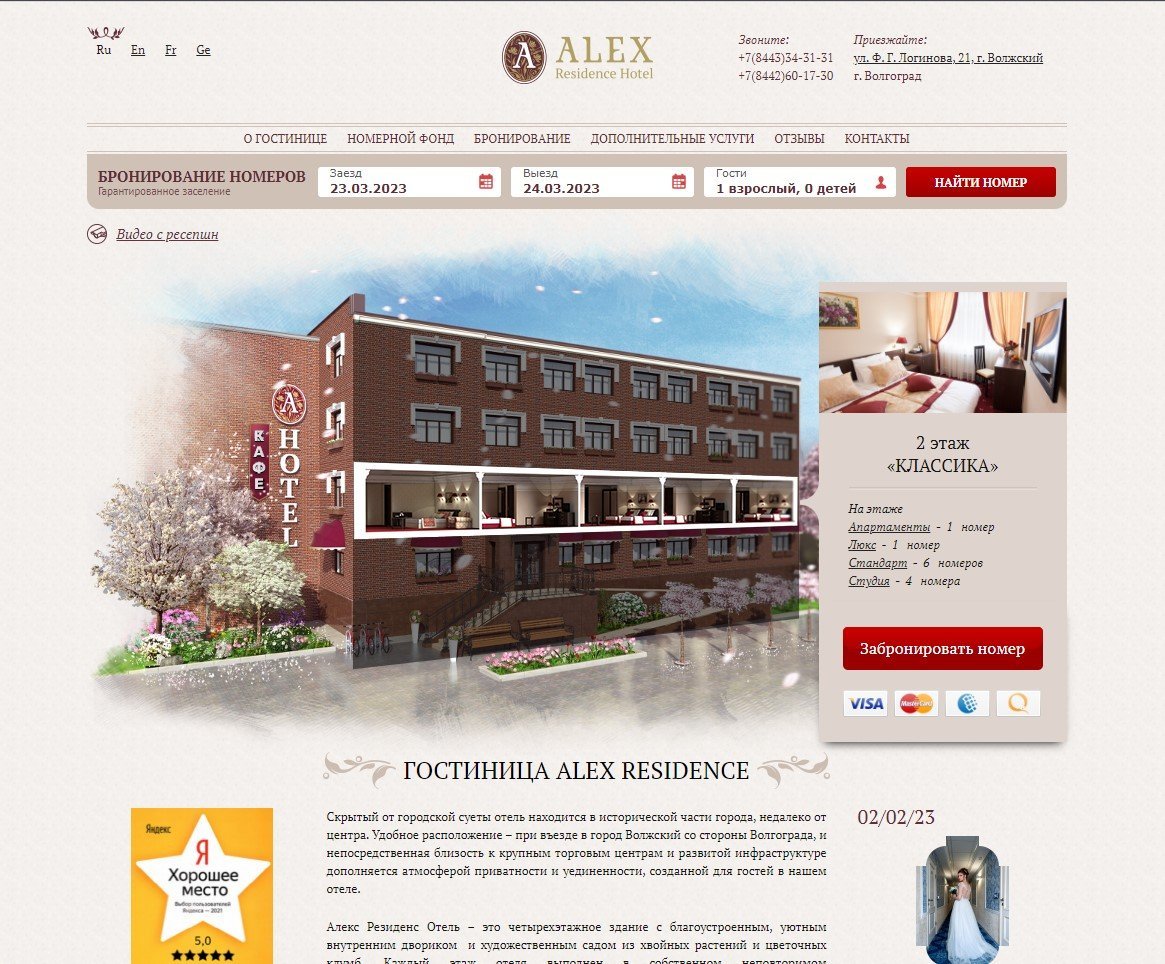 Клиент: гостиница «Алекс Резиденс» в городе Волжский.