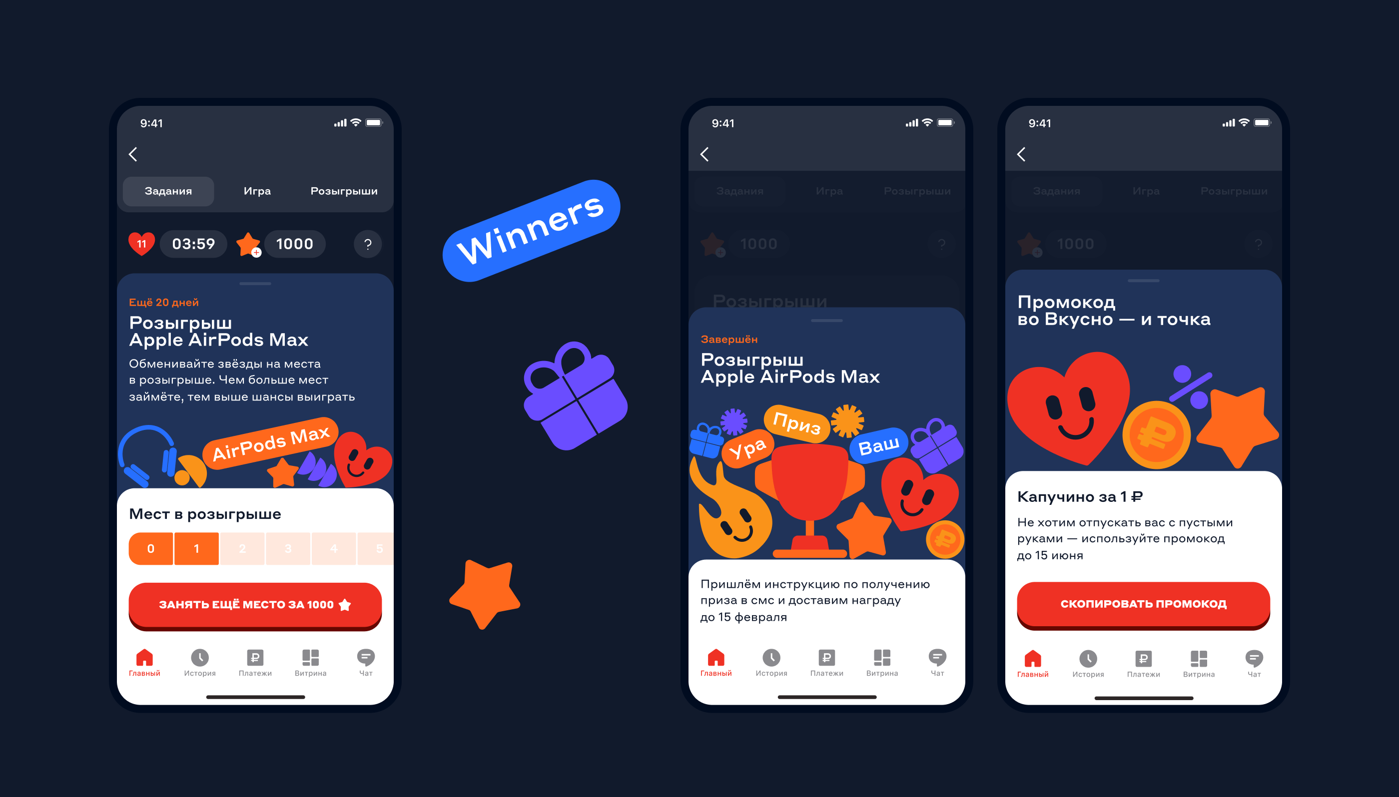 Чтобы клиент перешёл из категории отточных в категорию активных, недостаточно, чтобы он 1-2 раза воспользовался картой. Нужно, чтобы он был активен в течение 3-х месяцев. Поэтому игра должна быть долгосрочная. Не много игровых механик могут удерживать клиента такое количество времени, но мы справились и предложили 5 вариантов: