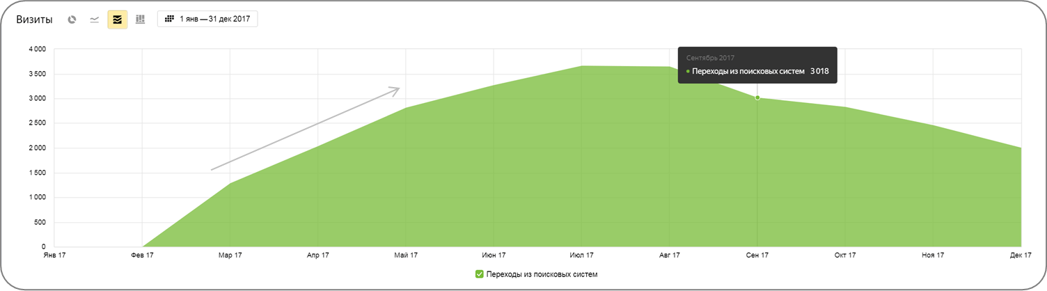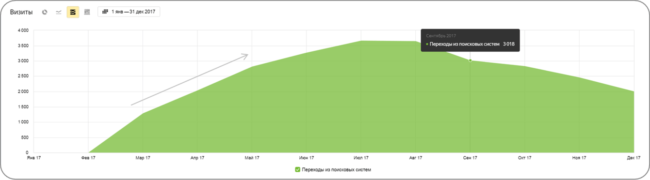 в 2017 году мы плотно и планомерно работали над добавлением текстов, оптимизацией разделов каталога, улучшали поиск по товарам в каталоге. Параллельно с этим, директологи улучшали запущенную рекламную кампанию - исключали не работающие запросы, добавляли и тестировали новые ключевые слова и объявления.
