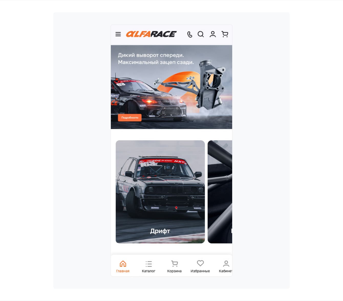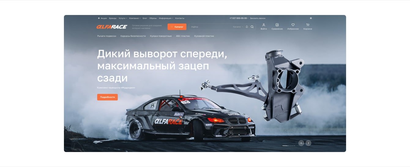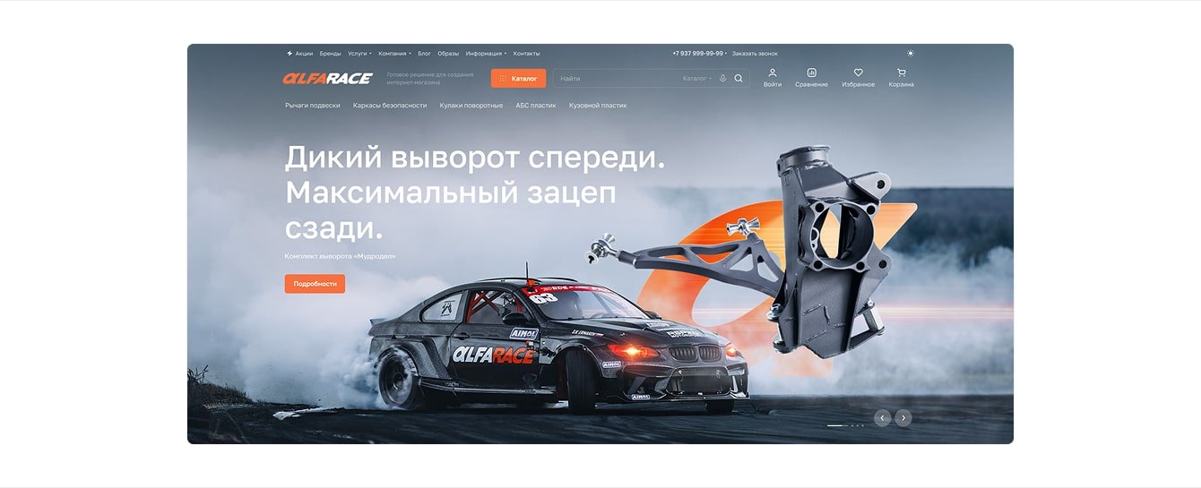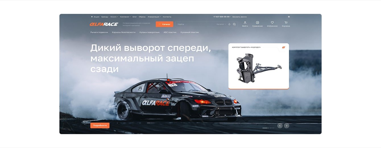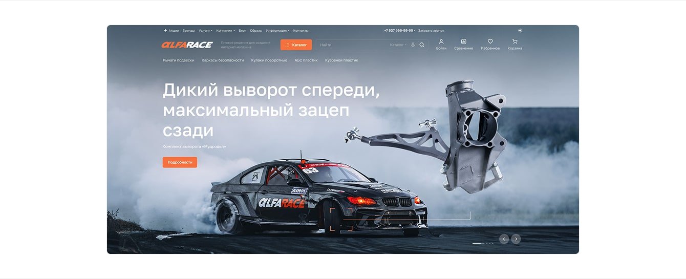Для команды Alfarace новый сайт стал большим шагом вперед с точки зрения дизайна. Изображения передают атмосферу бренда и отлично вписываются в тематику интернет-магазина.