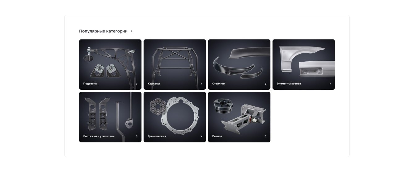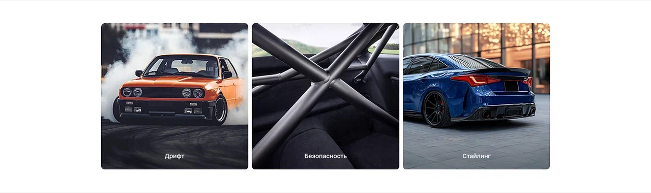 Первая версия — фото машины с логотипом и запчасть в белом прямоугольнике. Но этого было мало. Клиенту хотелось драйва, живого визуала.