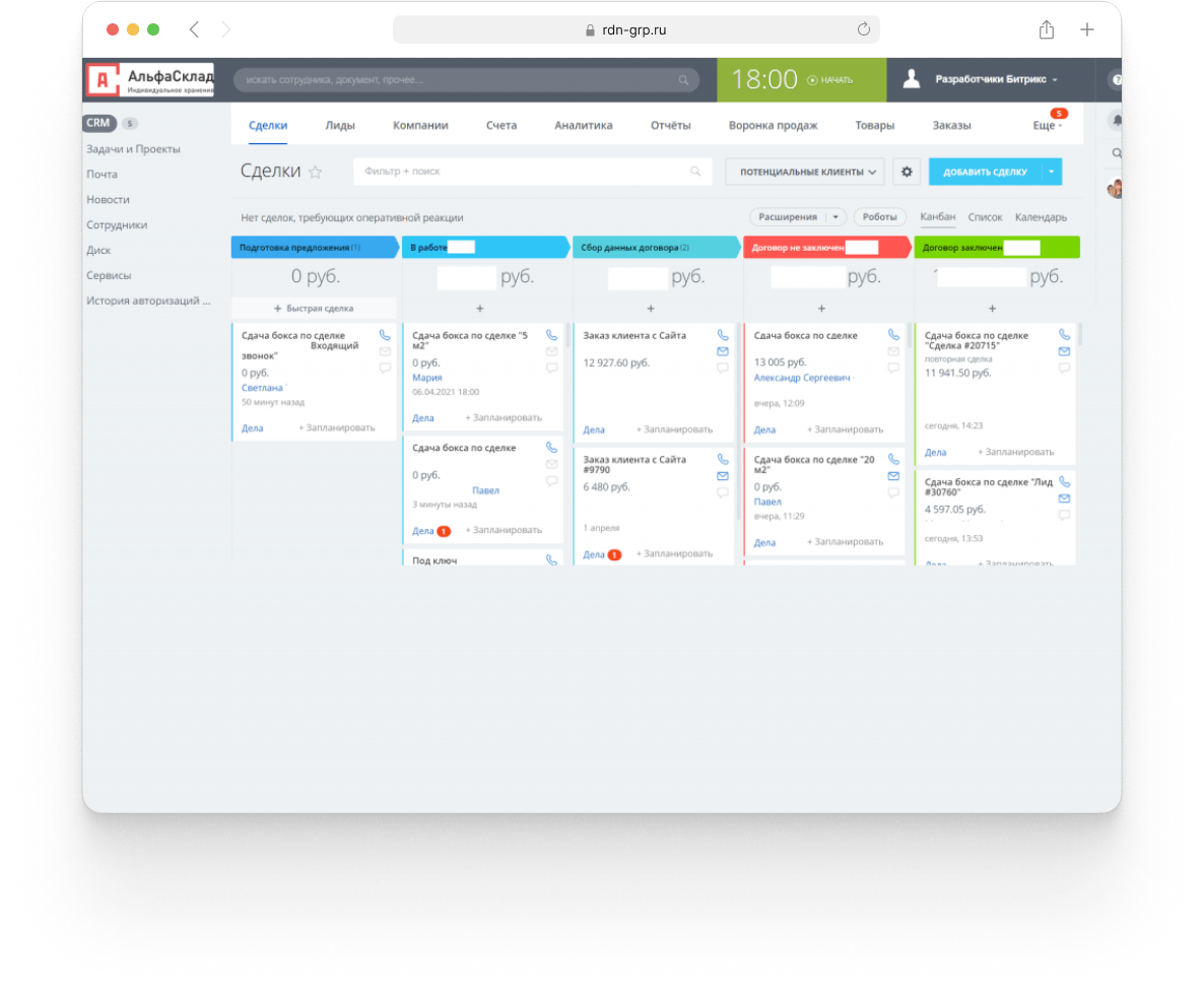 Сотрудники компании «АльфаСклад» получили возможность работать в CRM с разбивкой по складам. Вся клиентская и договорная база находится в быстром доступе с возможностью связаться с клиентом и пояснить необходимую информацию.
