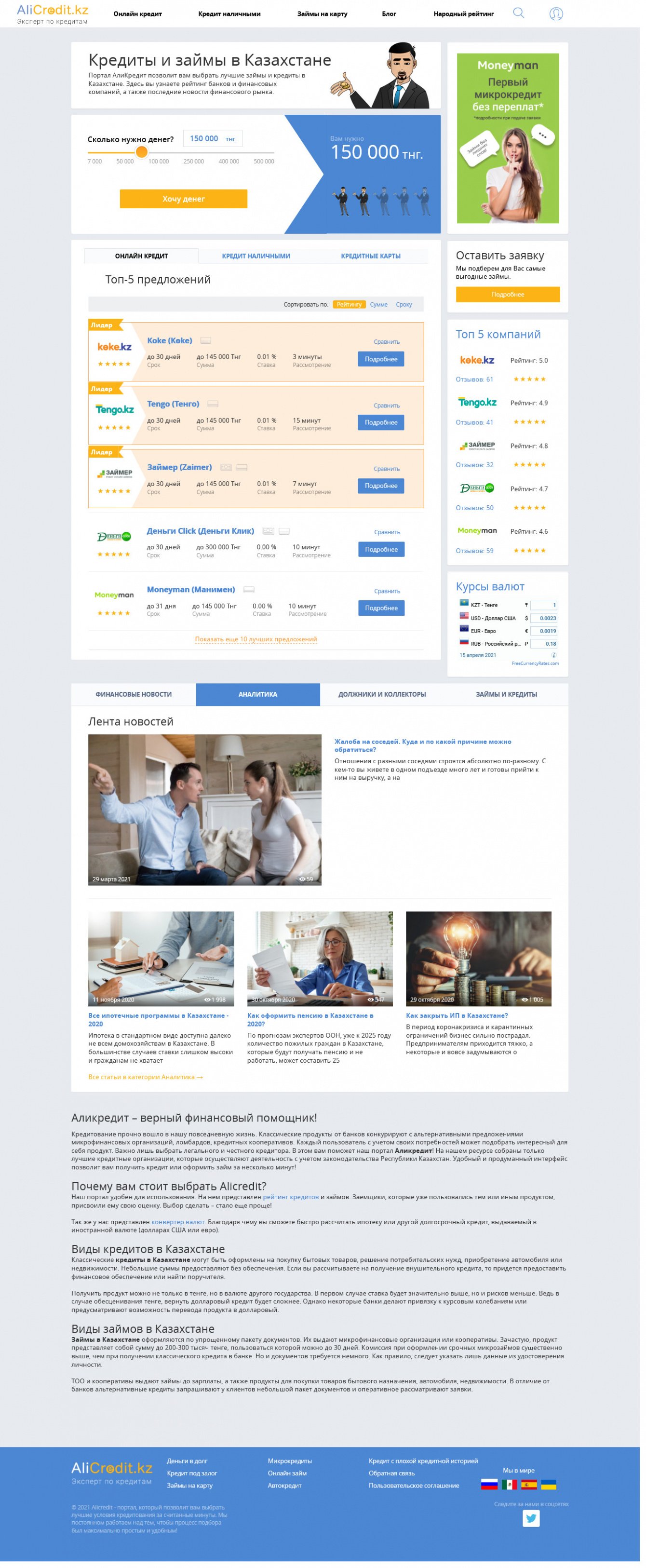 Задача: сделать копию портала с витриной офферов от различных банков и МФО с хорошим рубрикатором и фильтрами для Казахстана с небольшими изменениями.