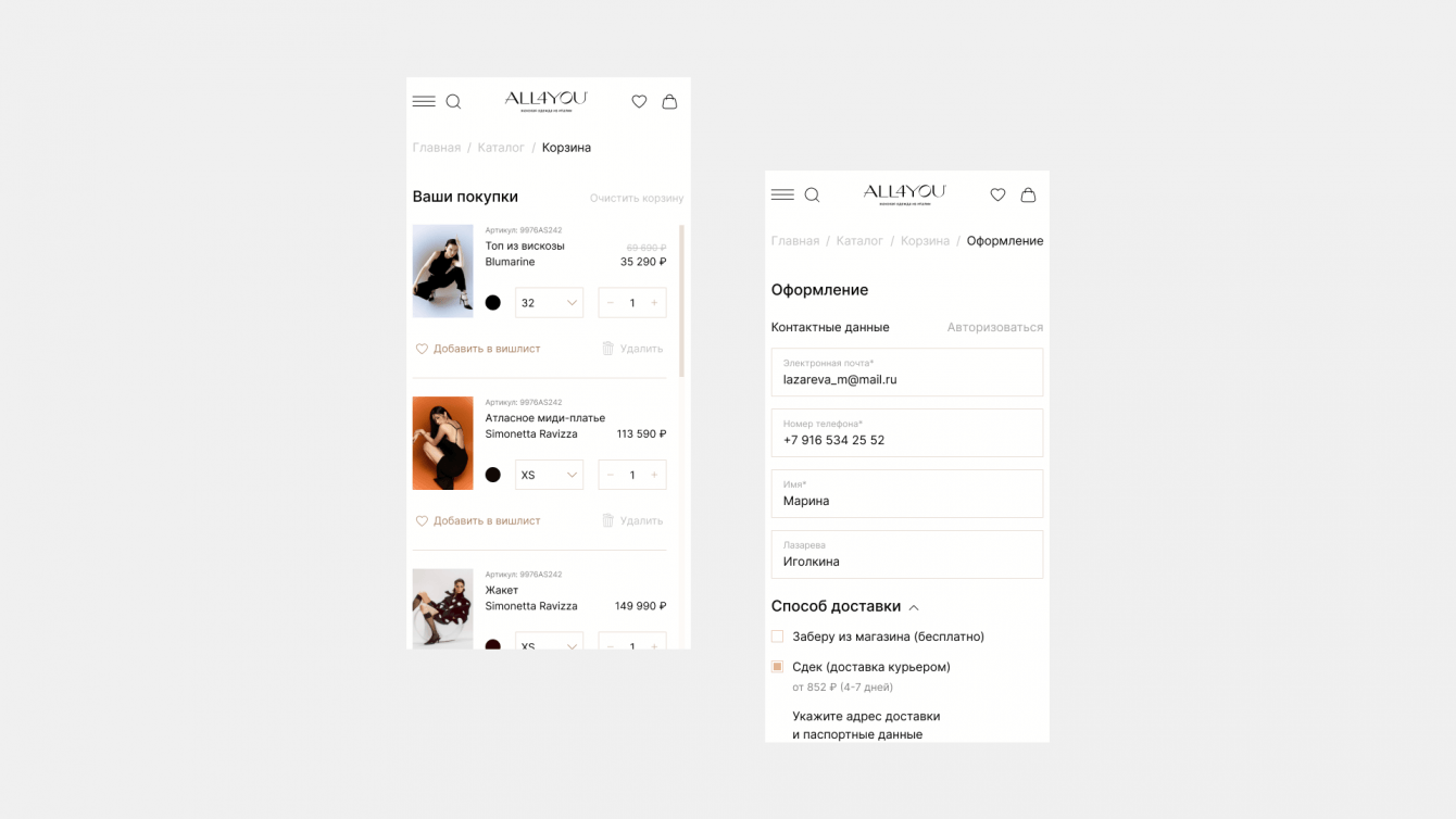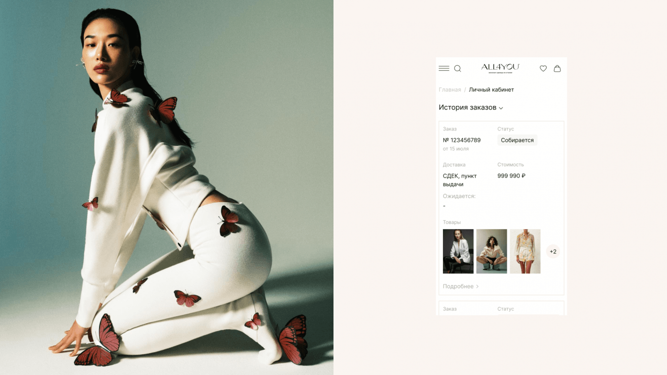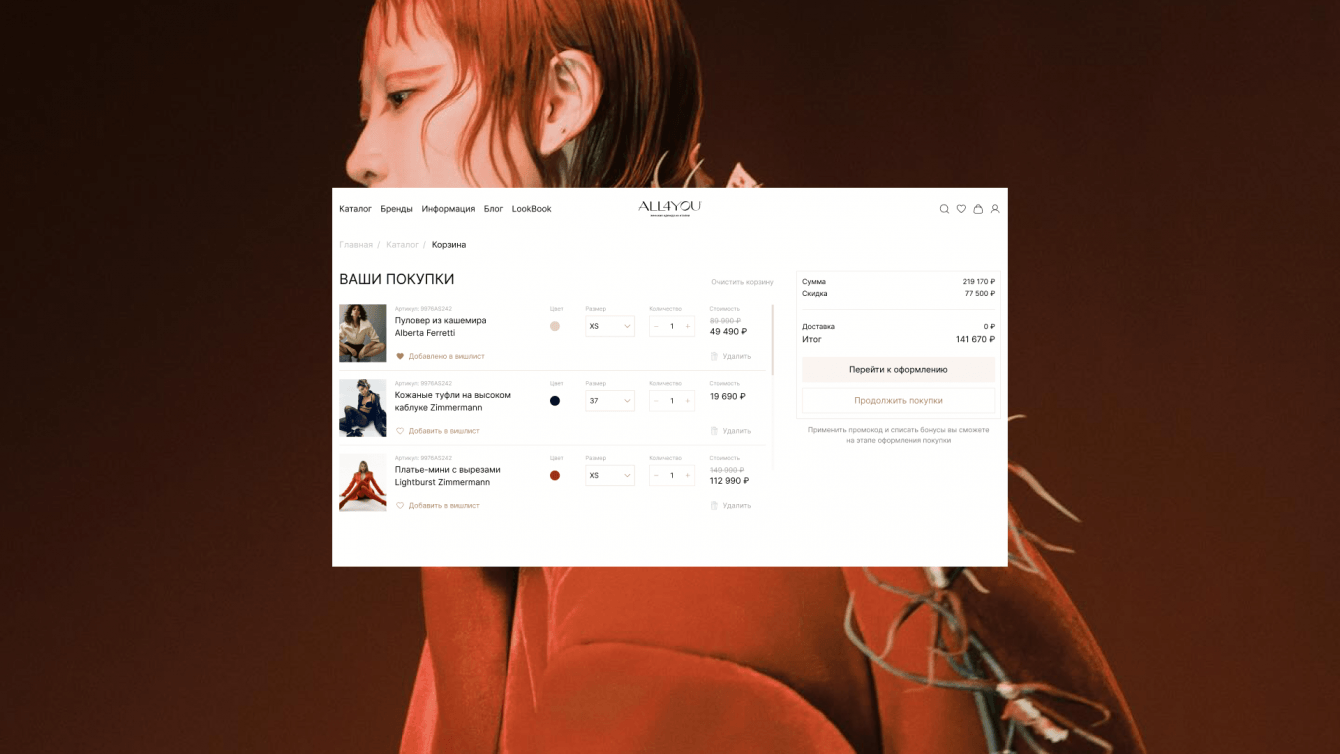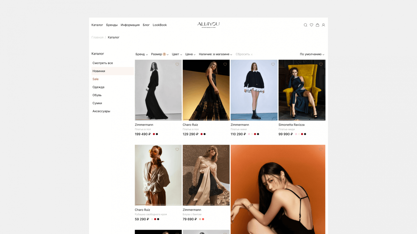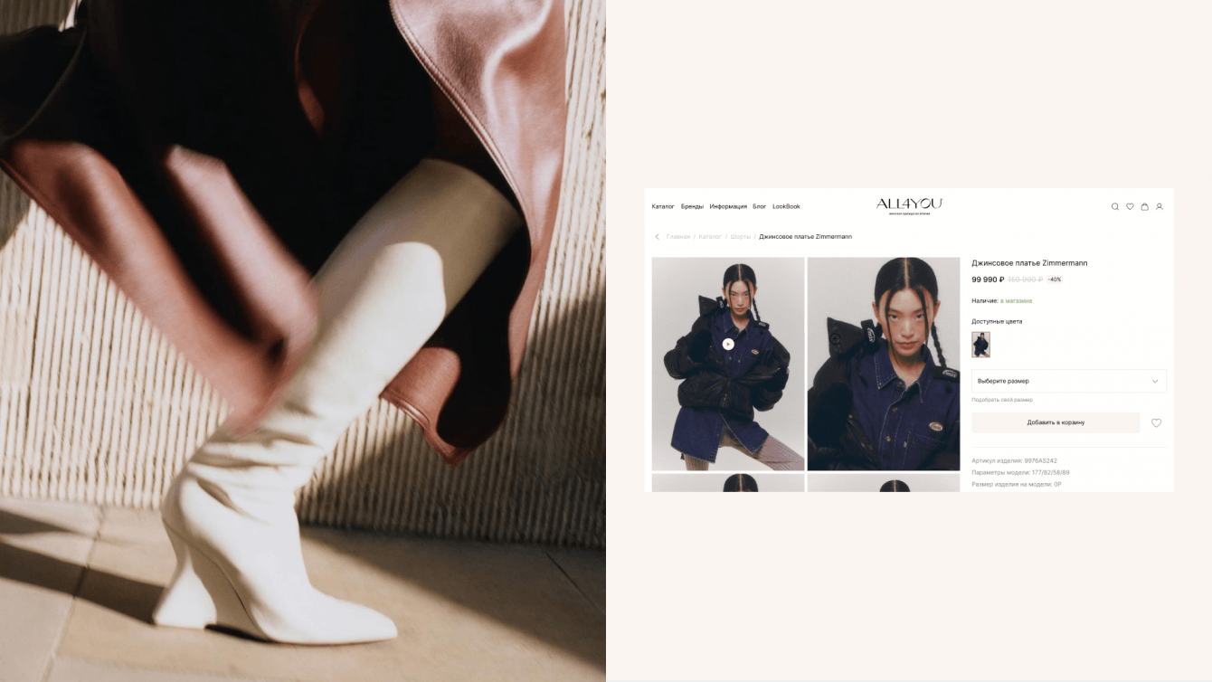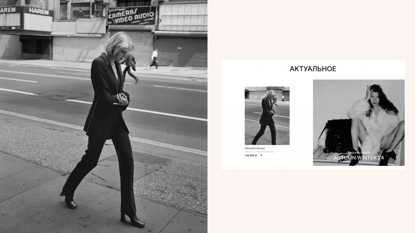 Создать интернет-магазин для мультибрендового бутика, сочетающий статусный имидж из офлайна с удобством и скоростью онлайн-шопинга. Необходимо было интегрировать логистику и учёт товаров, обеспечить простой поиск, предлагать готовые модные образы, а также сохранить узнаваемый стиль бренда и повысить комфорт для клиентов.