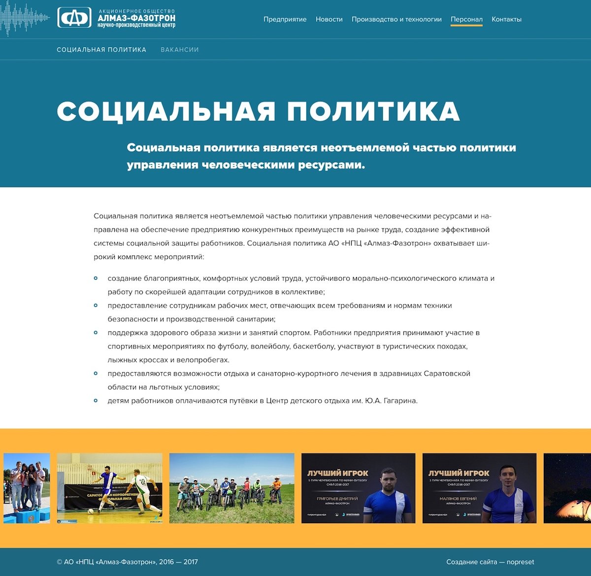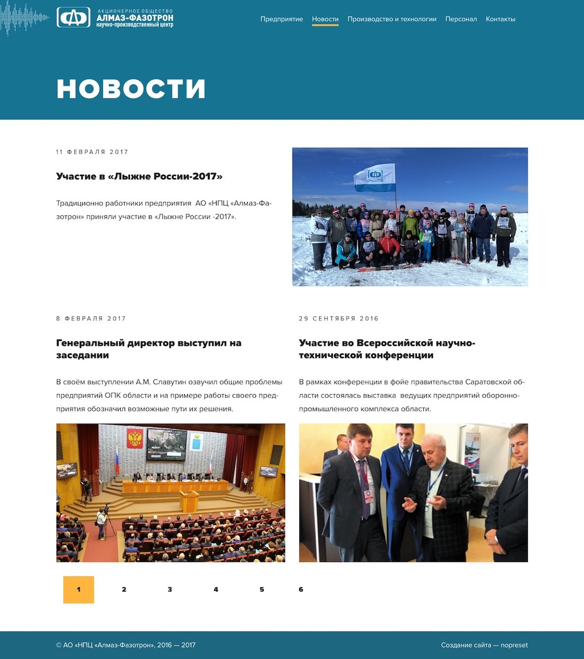 Внутри сайта мы разработали понятную структуру: главную страницу, страницу о компании, о продукции, о персонале и новостную страницу.