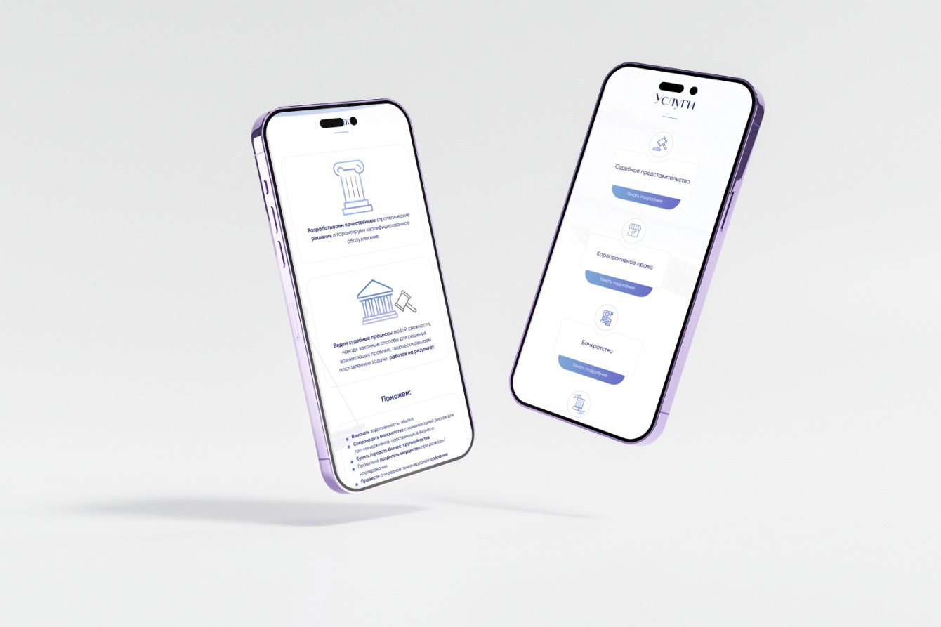 В результате работы мы сделали современный и удобный лендинг для небольшой юридической компании в Москве.