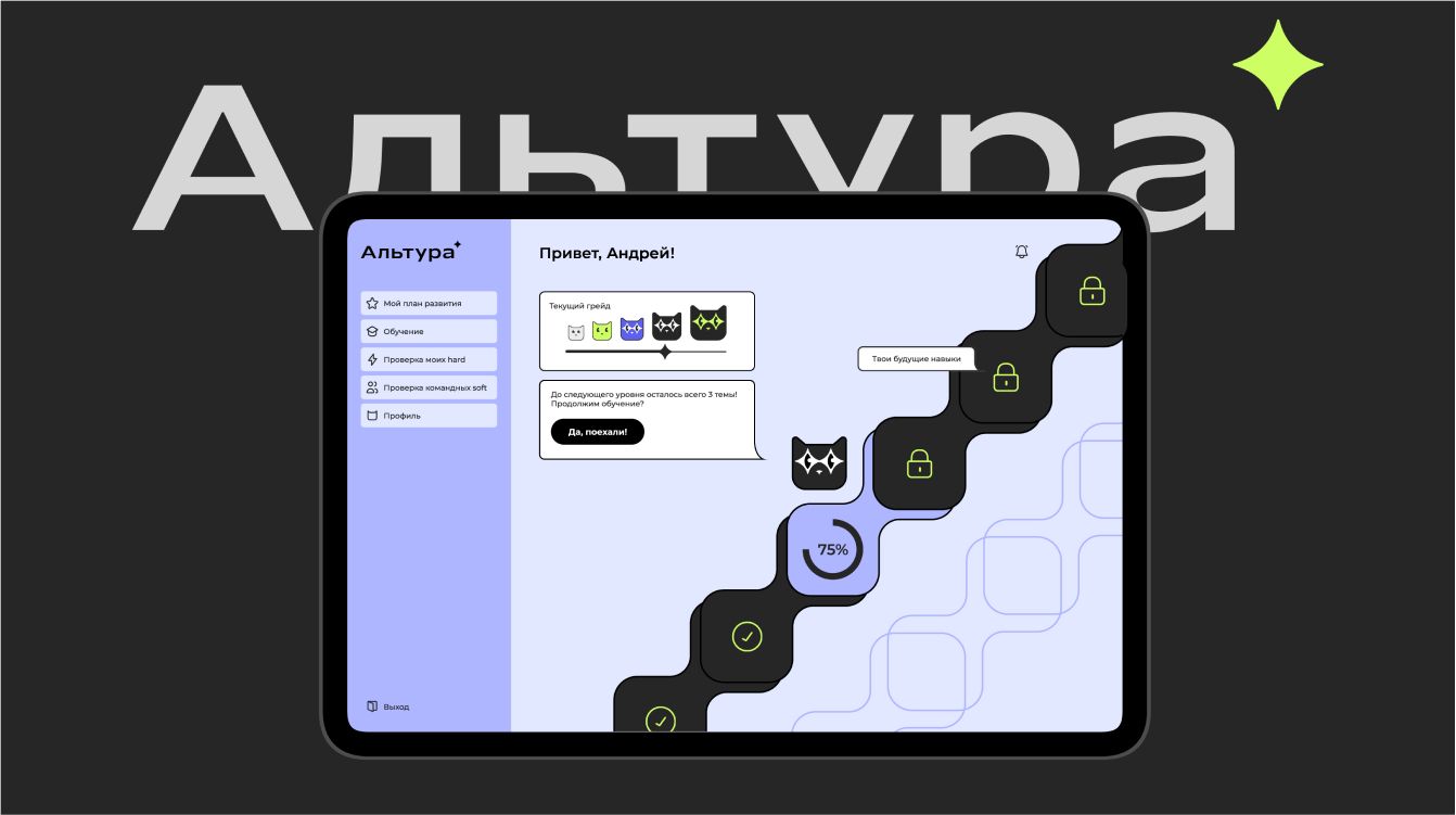 «Альтура» — не просто приложение, это путеводитель для роста профессиональных навыков. Она не только помогает профессионально развиваться IT-специалистам, но и оценивать уровень компетенций команды для выполнения стратегических задач.