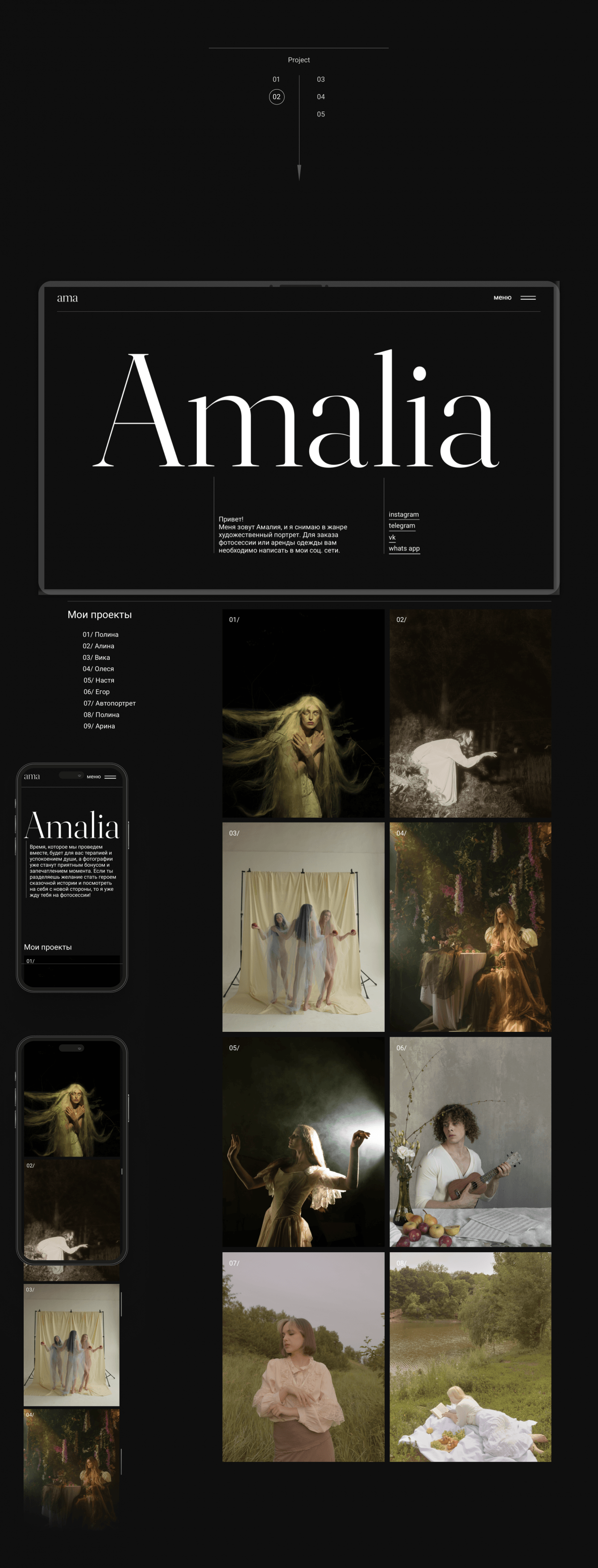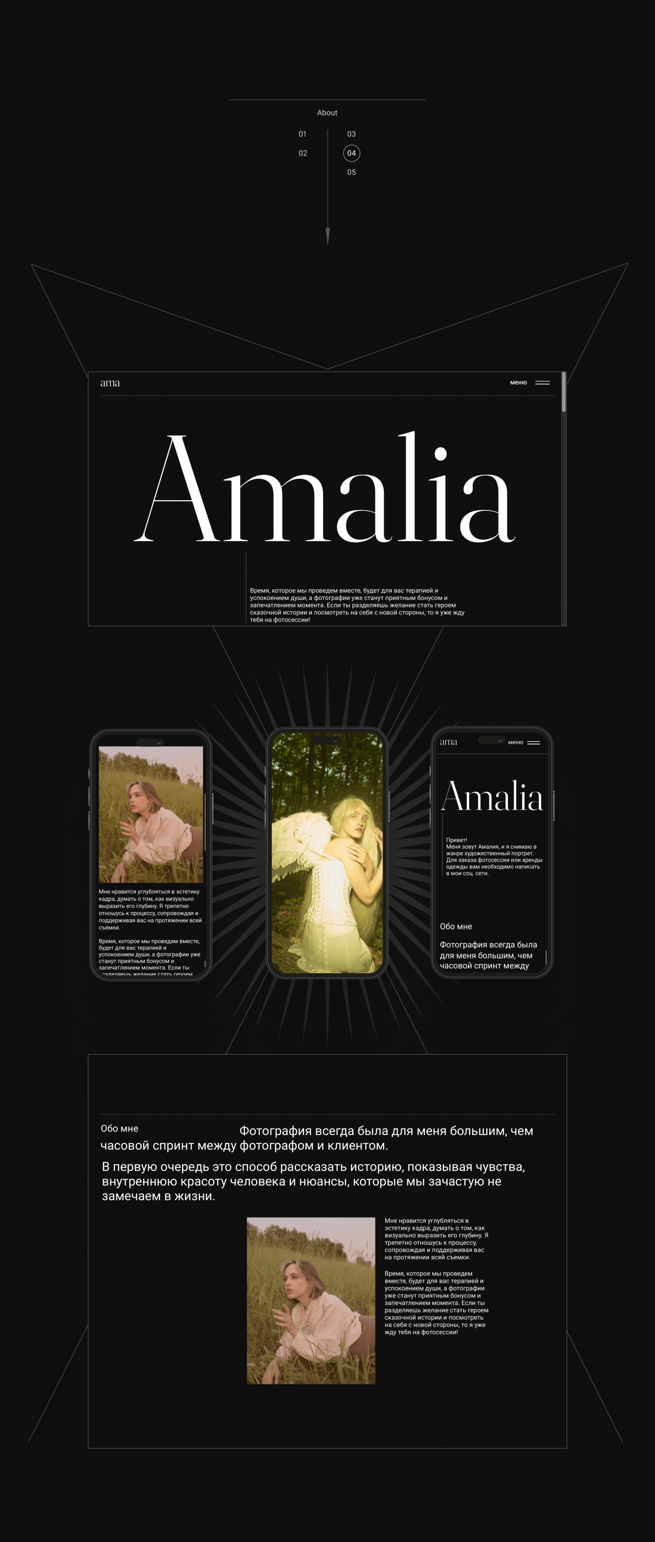 Задачей проекта было подчеркнуть творческий подход клиента к работе, сделать эффектную демонстрацию ее работ, разработать интуитивно понятный интерфейс и подумать SEO для продвижения