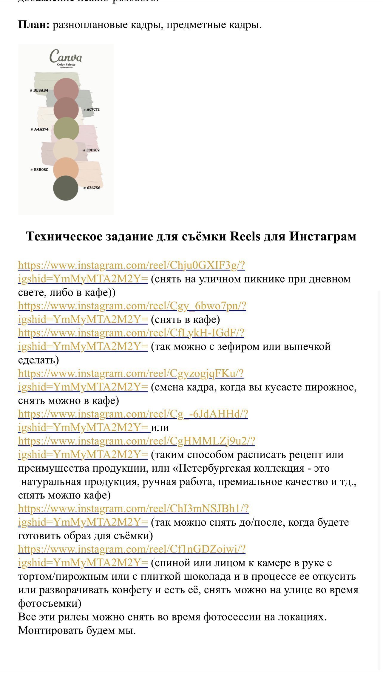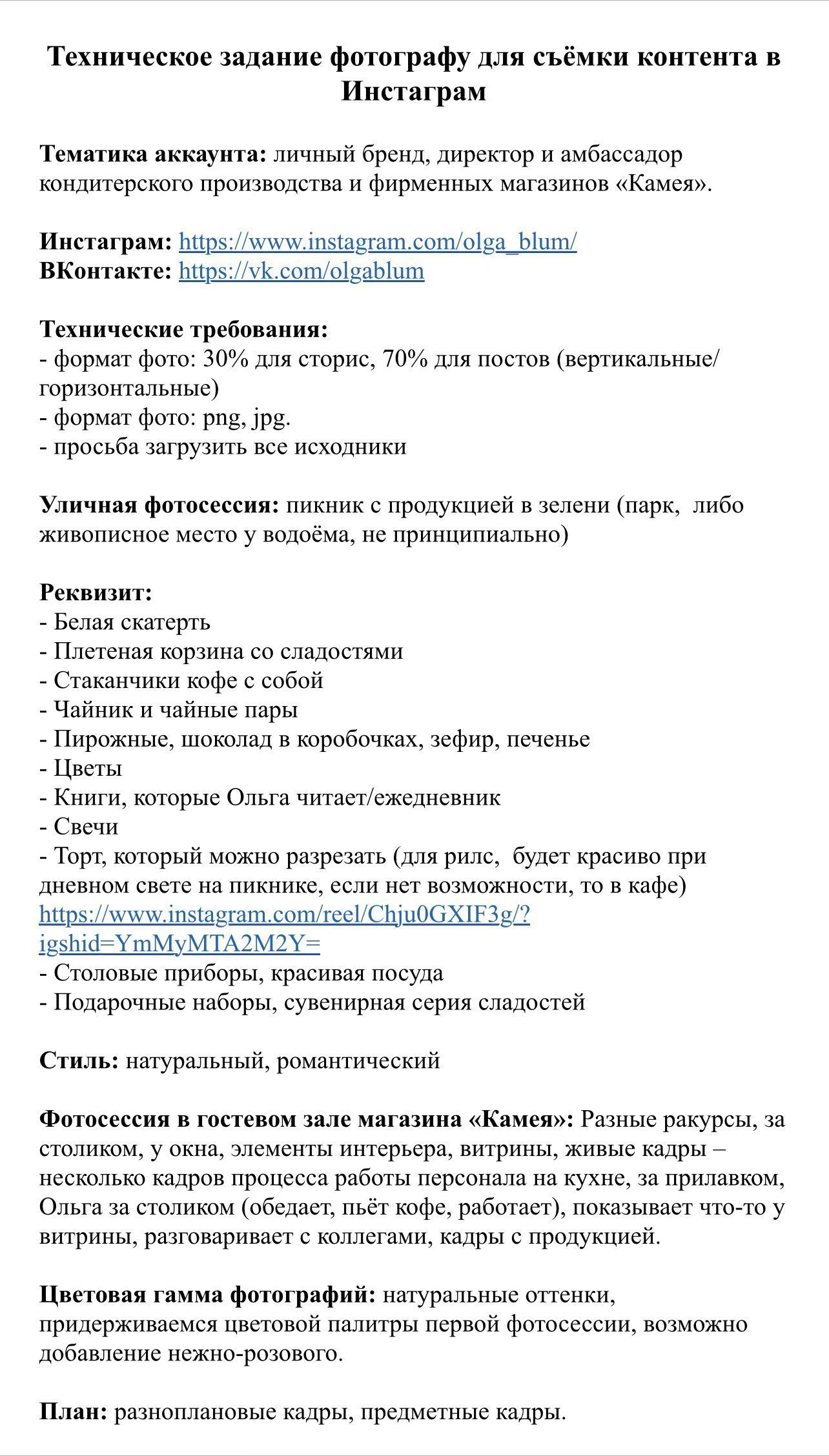Для продвижения личного бренда необходима качественная упаковка, поэтому мы регулярно готовили ТЗ для профессиональной личной съемки фото и видео/Reels, а также фуд. съемки – продукции.
