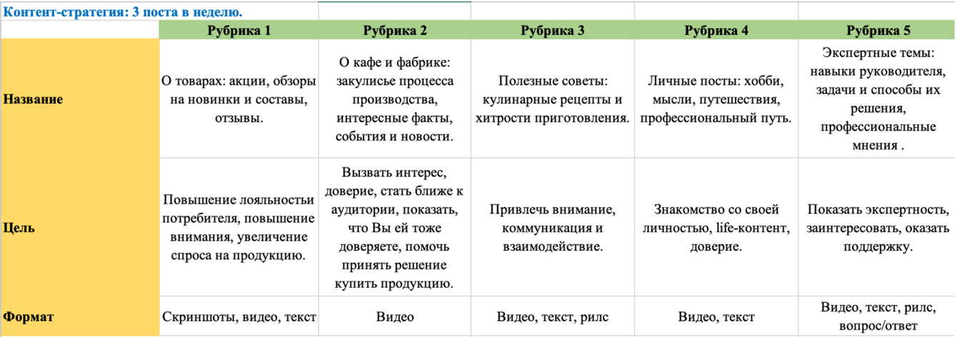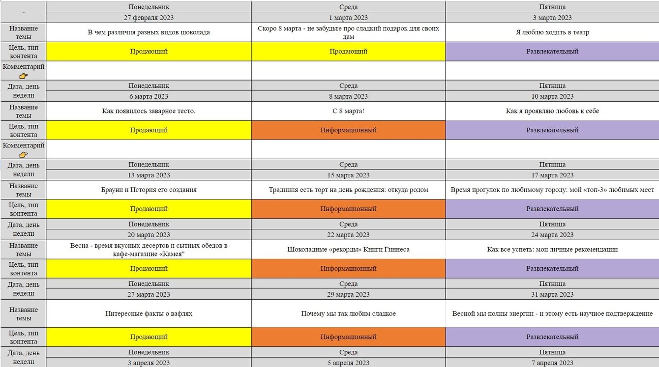 На основе рубрикатора составляем контент-план, который включает в себя информационный контент, продающий и развлекательный.