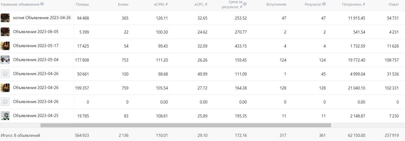 Помимо бесплатных инструментов продвижения, мы активно работаем с таргетированной рекламой ВКонтакте. Создали рекламный кабинет, проработали ЦА, разработали креативы и запустили рекламу. Работали сначала на старой рекламной платформе, потом перешли на новую.