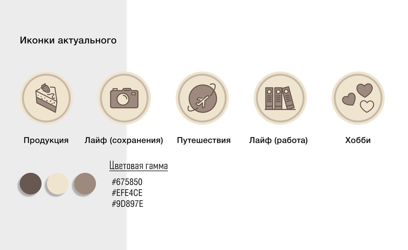 В соответствии с пожеланиями и брендбуком кондитерской сети Камея дизайнер разработал фирменный стиль соц. сетей Ольги и создал: