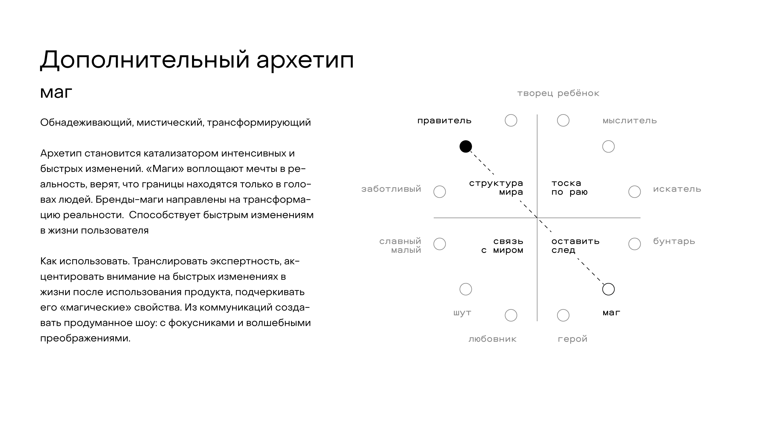 Мы провели с CEO брифинг, обозначили позиционирование, характер и ближайшие цели. После чего определили 2 архетипа: