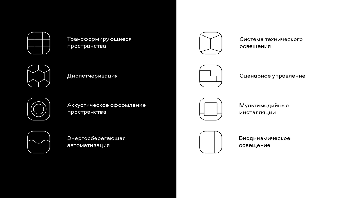 Создаёт проекты в комплексе: дизайн, мультимедиа, освещение, замер, автоматизация.