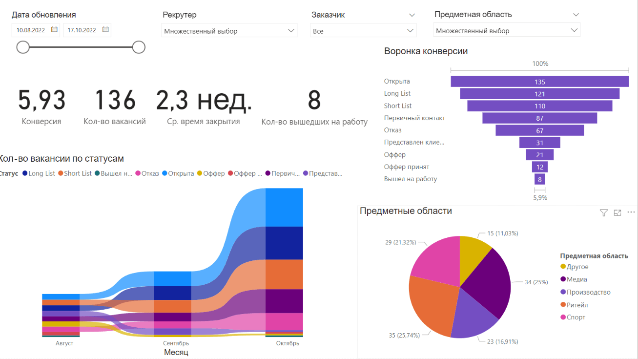 Построение аналитического отчета на данных из рекрутинговой системы Huntflow